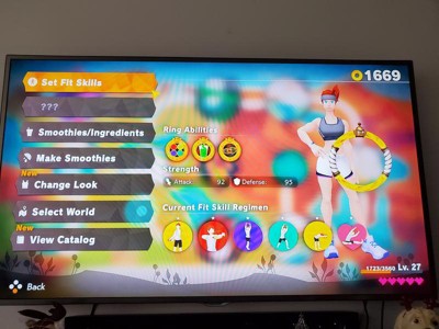 In Adventure mode, defeat enemies with attacks based on real-world exercises! As you work through each level (and possibly work up a sweat), you’ll earn experience points. Between fights, you may encounter some unusual methods of transportation such as squat-powered launch pads, and more! Want to compete with others? Pass around the Ring-Con accessory and select from a few minigames: break boxes with gusts of air, craft pottery using squats and many others.