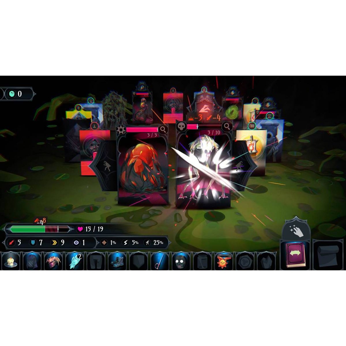 Observe and plan your route. Will you go for the loot or backstab a creeping horror? As you scavenge, fight and sneak to new encounters, the ring reacts to your actions.
