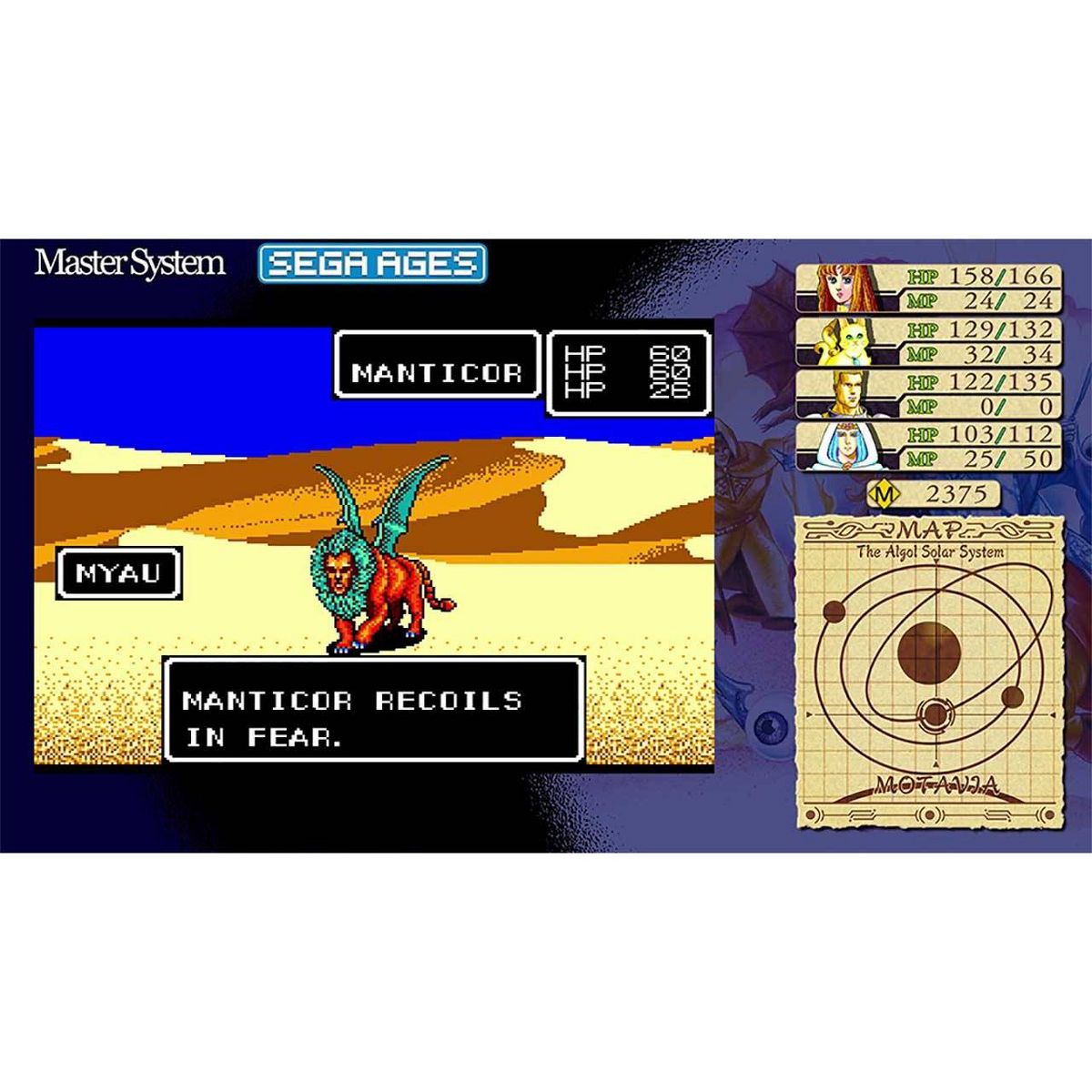 Take advantage of the new dungeon map display and the acclaimed “Ages Mode” as you traverse tricky dungeon mazes and battle ferocious 8-bit beasts. Phantasy Star has claimed its place as a pioneer RPG and its retro-spirit is sure to find a home in the hearts of old and new fans alike.