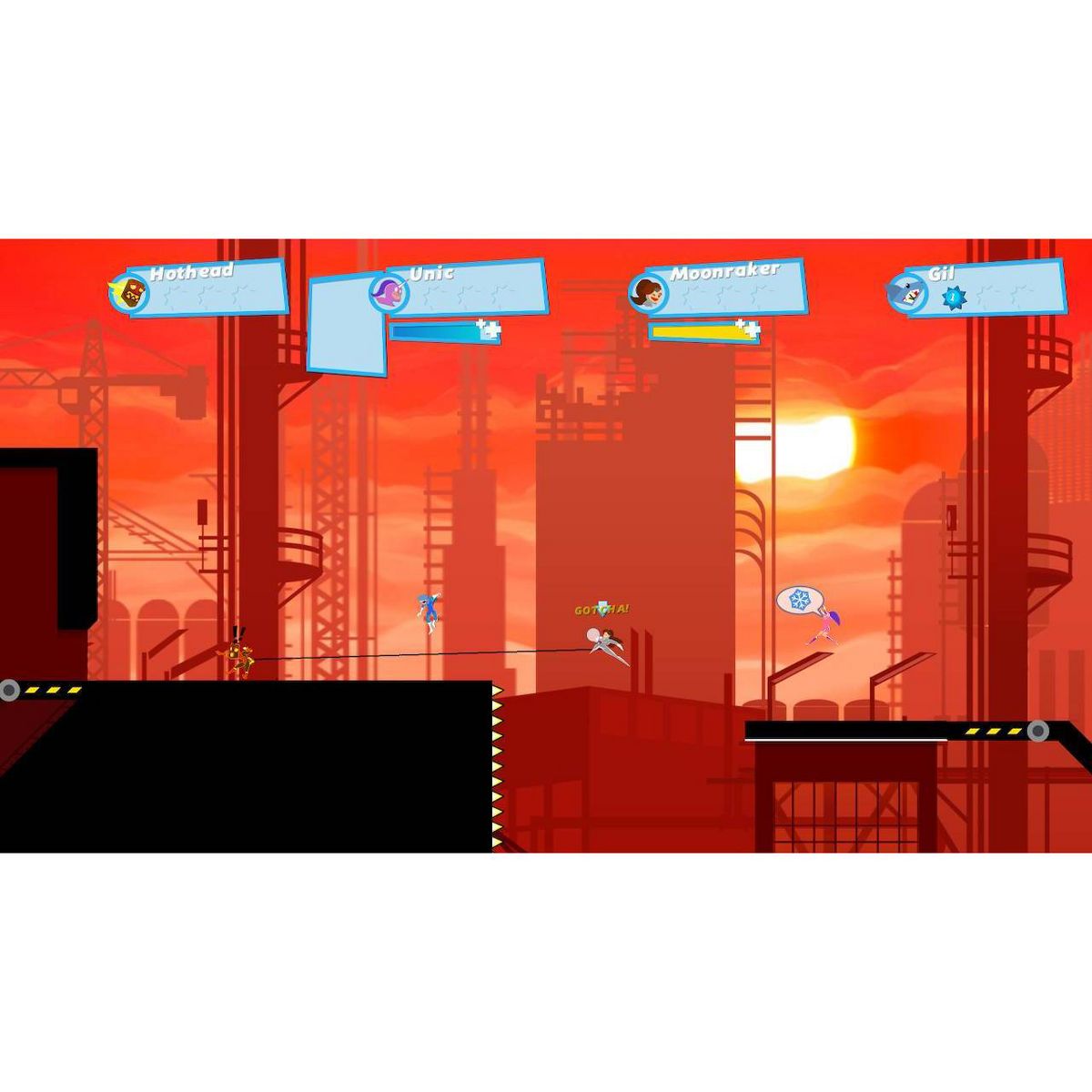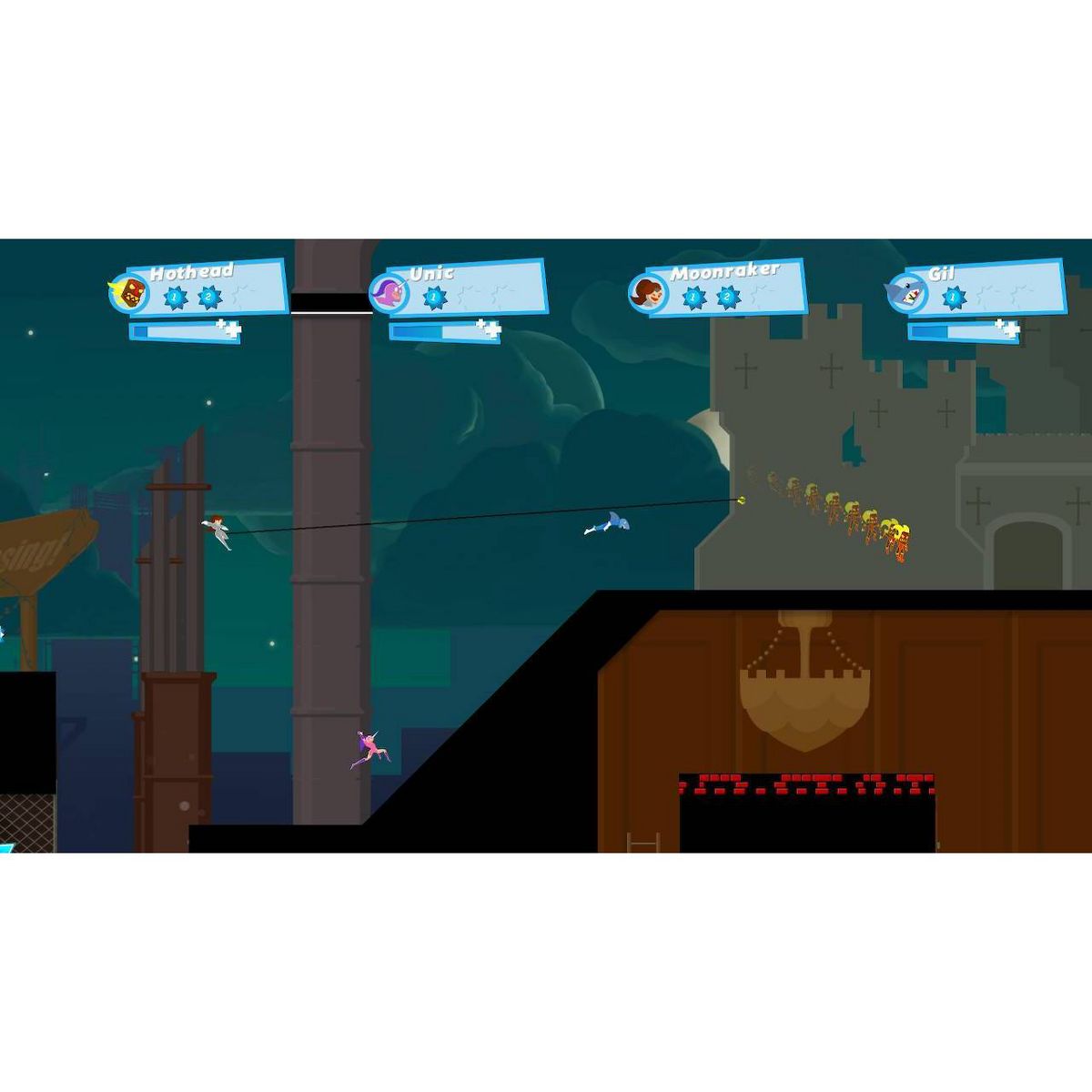 Grapple your friends to outrun them in this competitive multiplayer platformer!
