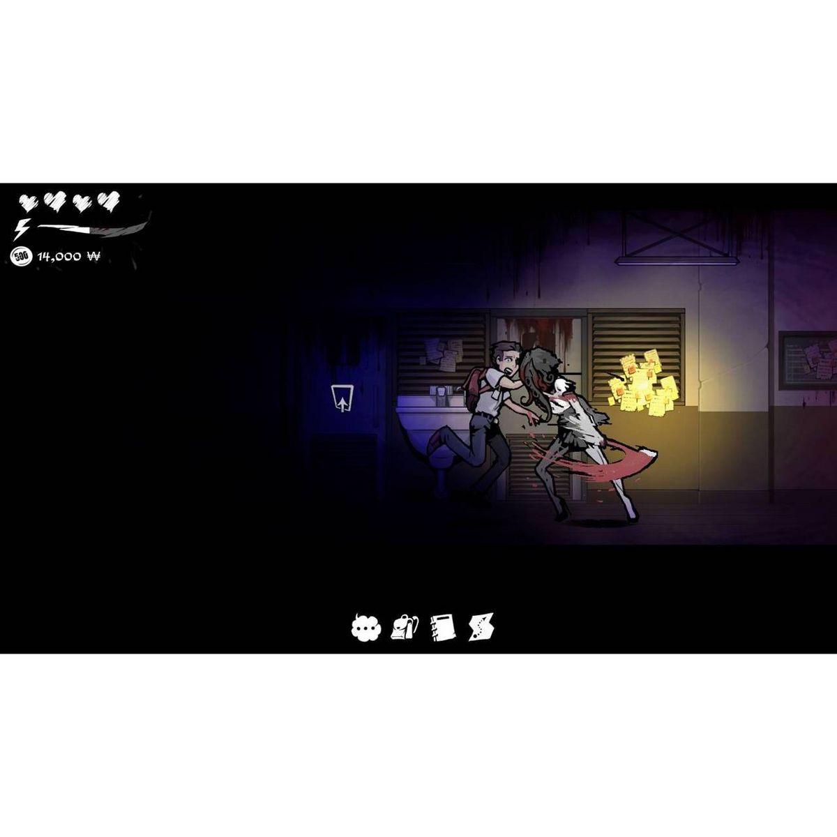 Everything is out to get you. Youngho will have to avoid a persistent killer, lashing tentacles, and more to survive the school. Unfortunately, health is in short supply, and if you're not careful, you will die. The good news is that save-points provide a welcome breather from the onslaught of things trying to kill you.