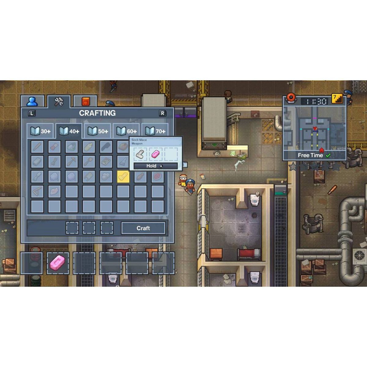 The Escapists 2 introduces a brand new combat system to make every prison brawl more exciting and interactive. You’ll have to block and tie together chains of attacks whilst strafing around your locked on targets to gain the upper hand in combat. Make sure your visit the gym first to build up those muscles!