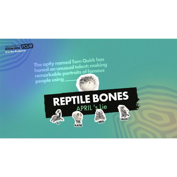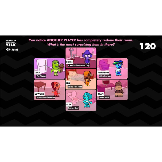 Jackbox Games and the Jackbox Games logo are registered trademarks of Jackbox Games, Inc. Fibbage, Roomerang, Junktopia, Nonsensory, Quixort and Party Pack are trademarks of Jackbox Games, Inc. All other trademarks and logos are the property of their respective owners.