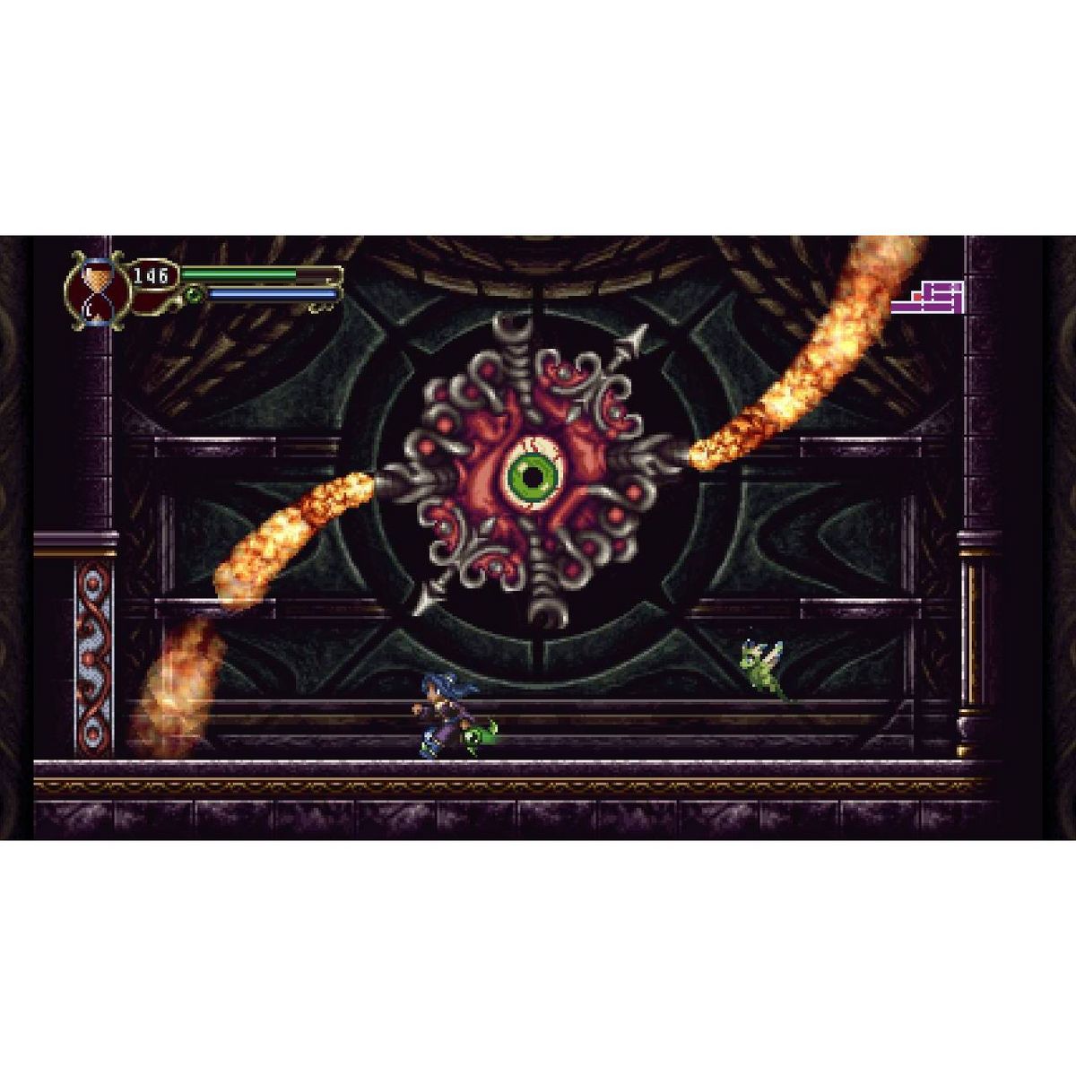 Explore a vast, connected world with beautifully drawn and detailed pixel art environments. Traverse between the barren present and luscious past of Lachiem, collecting elemental magic orbs and combining their power to destroy enemies with blades and spells. Befriend mysterious creatures called Familiars, such as the adorable dream dragon Meyef, and train them to aid you in battle. Test your skills and timing with intense boss battles, and you venture forth to take on the Emperor himself!