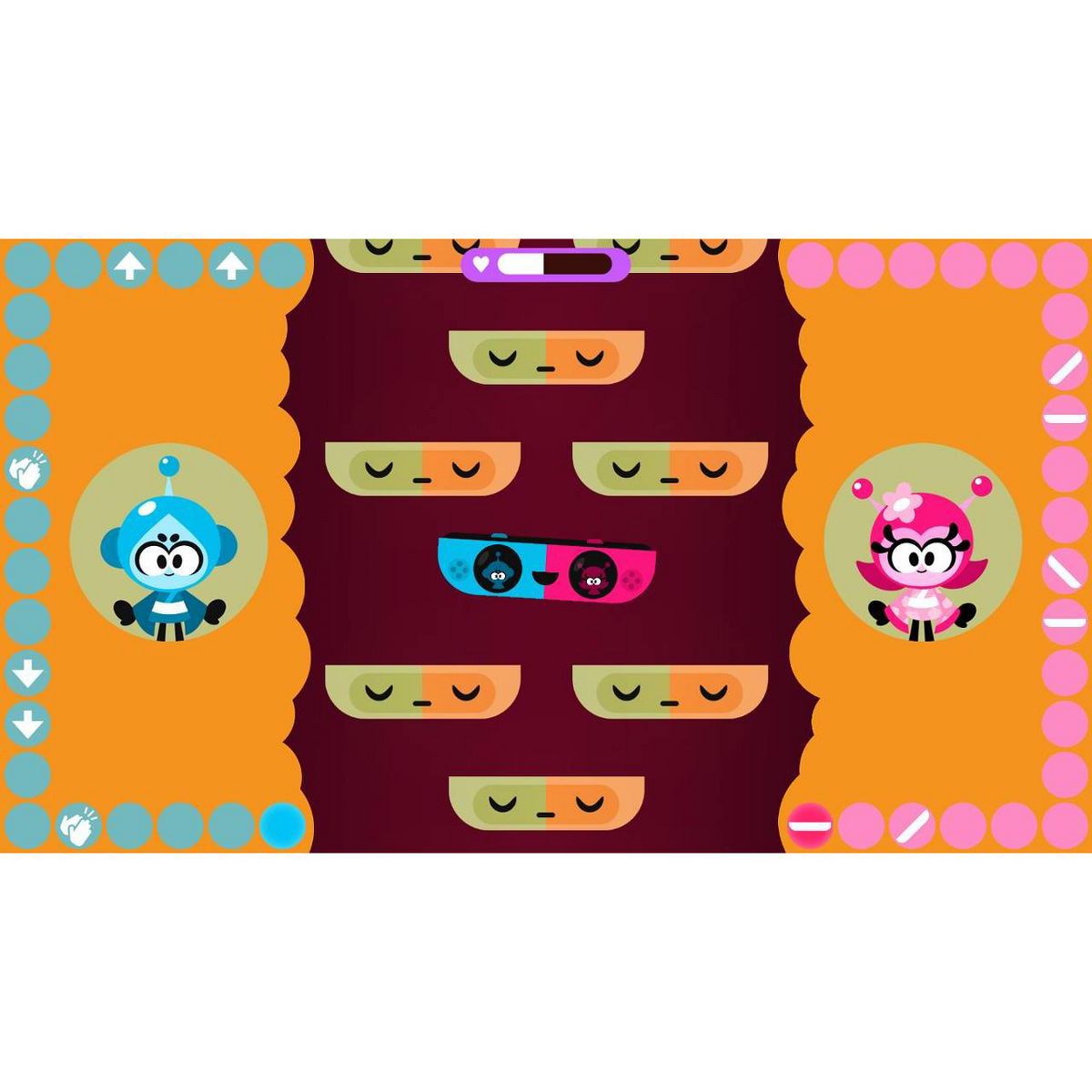 When playing together, coordination is key, as one player holds the Joy-Con™ controller vertically to move and shoot, and the other holds the Joy-Con horizontally to rotate and aim. Only by forming a connection and harnessing the vitamin power of Vita-Boy & Mina-Girl will you be able to stop the molecular menace!