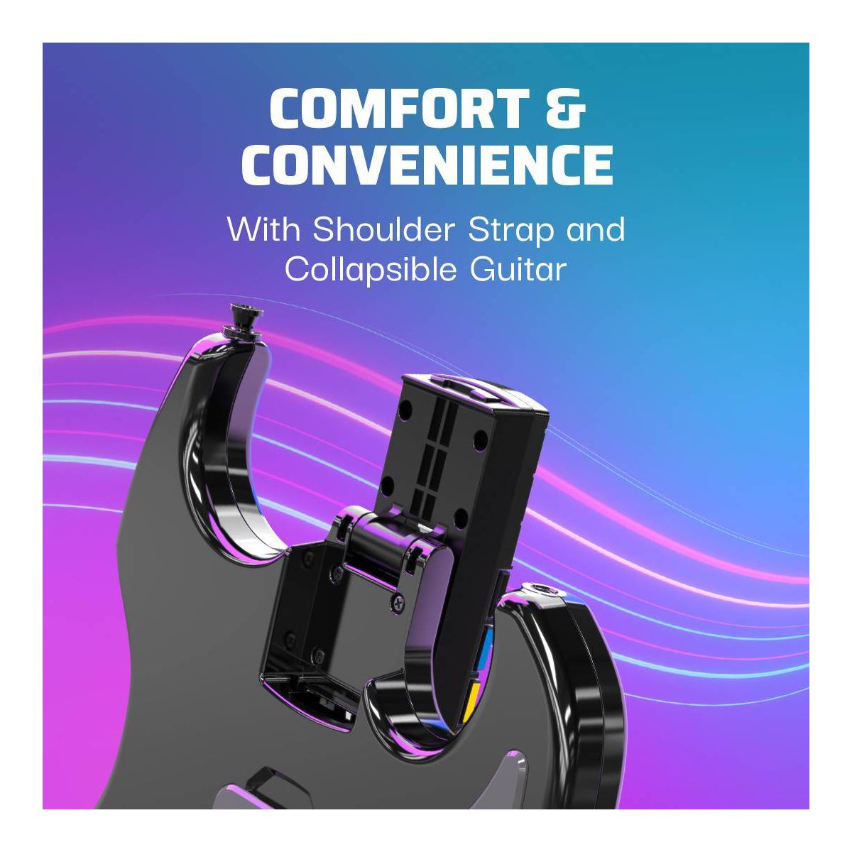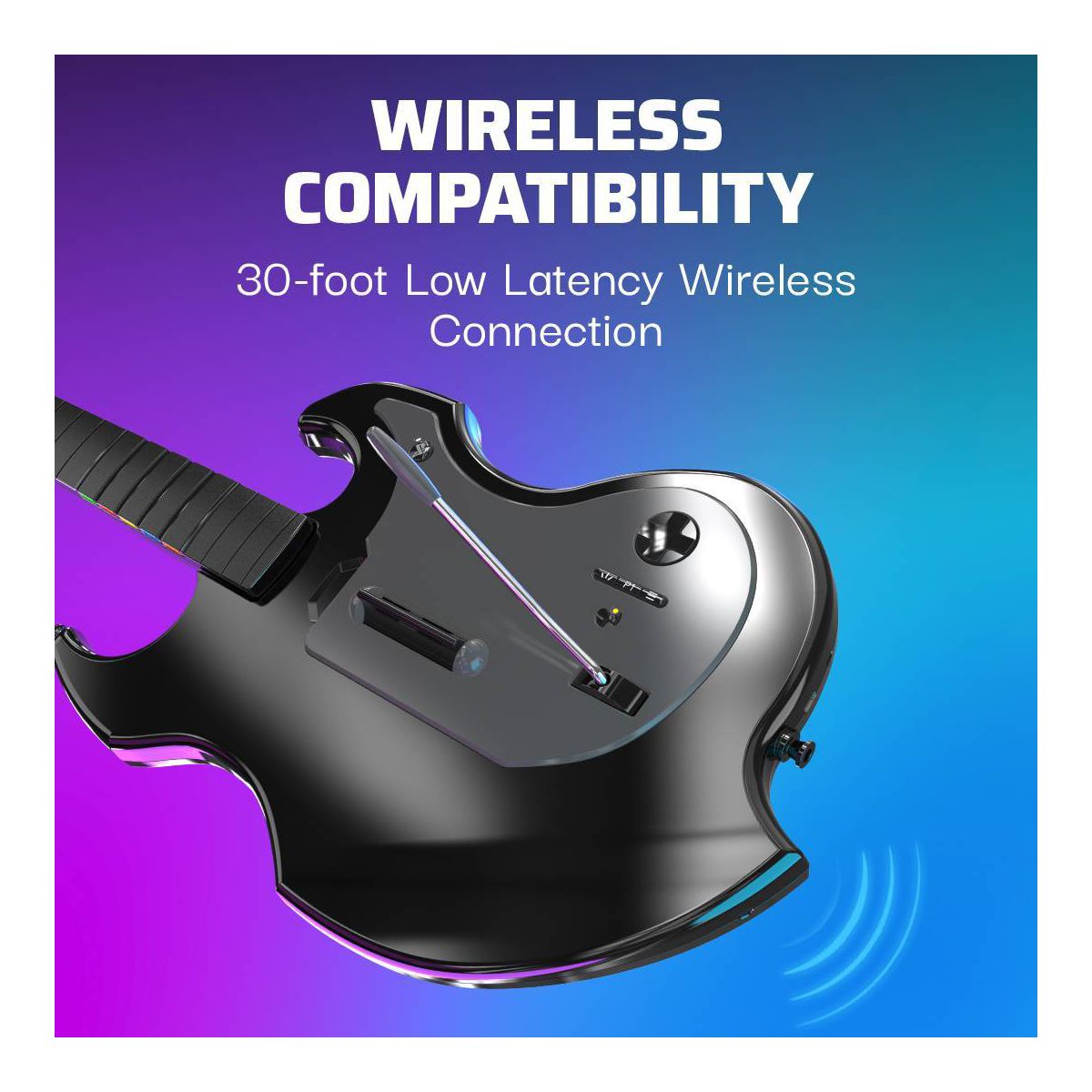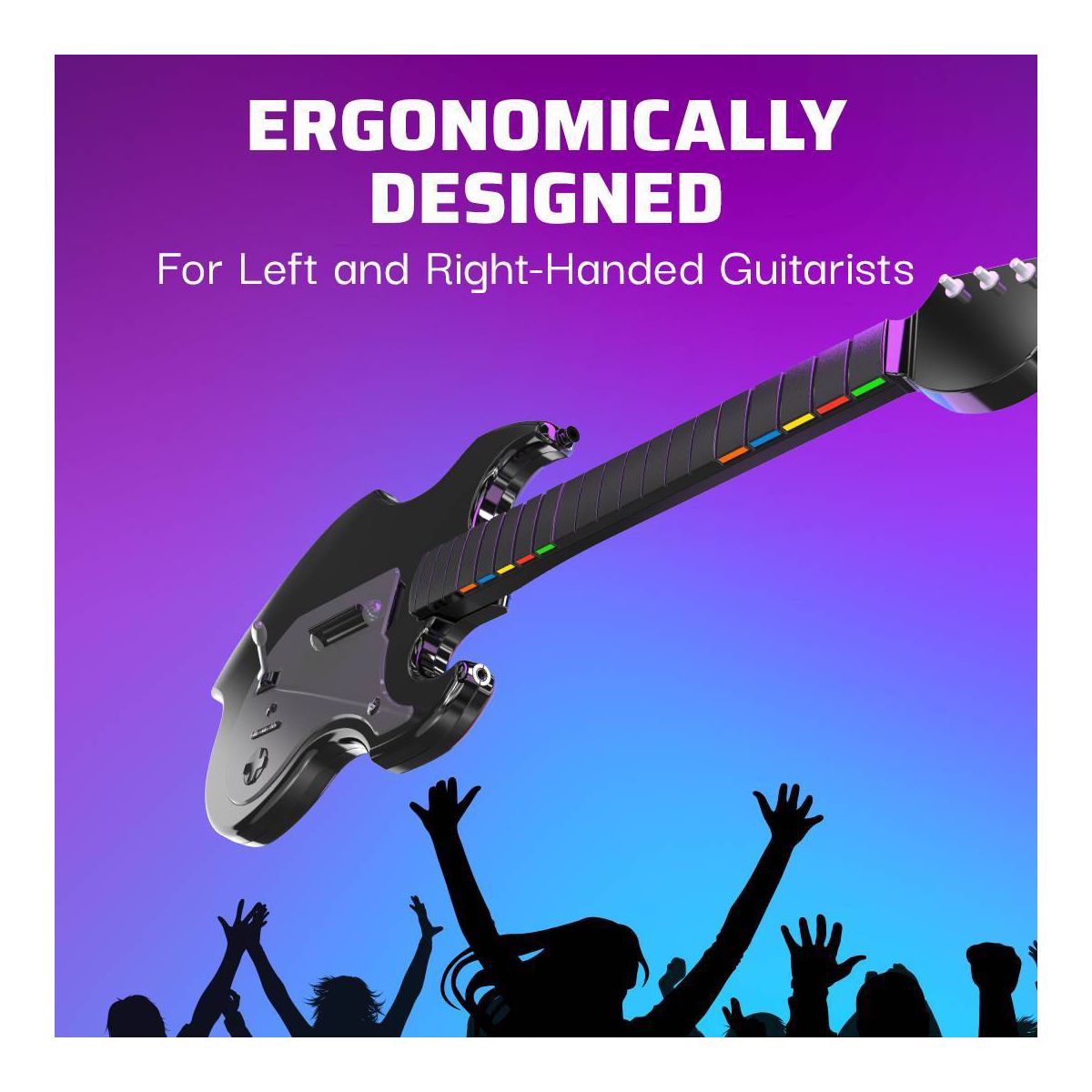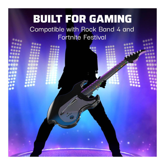 Rock On with the RIFFMASTER wireless guitar controller! The newest guitar in the market allows you to play music like a true rock star now on Fortnite Festival and Rock Band 4. With a unique design that is suitable for both left and right handed guitarists, everybody has a chance to dominate the competition.