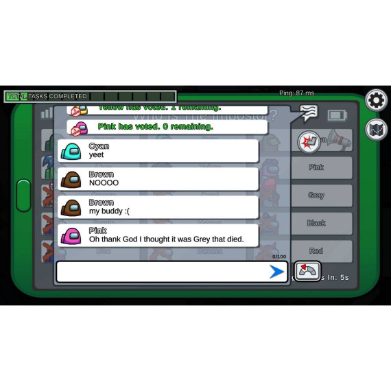 While fixing up the ship, no one can talk to maintain anonymity. Once a body is reported, the surviving crew will openly debate who they think The Impostor is. The Impostor's goal is to pretend that they are a member of the crew. If The Impostor is not voted off, everyone goes back to maintaining the ship until another body is found. If The Impostor is voted off, the crew wins!