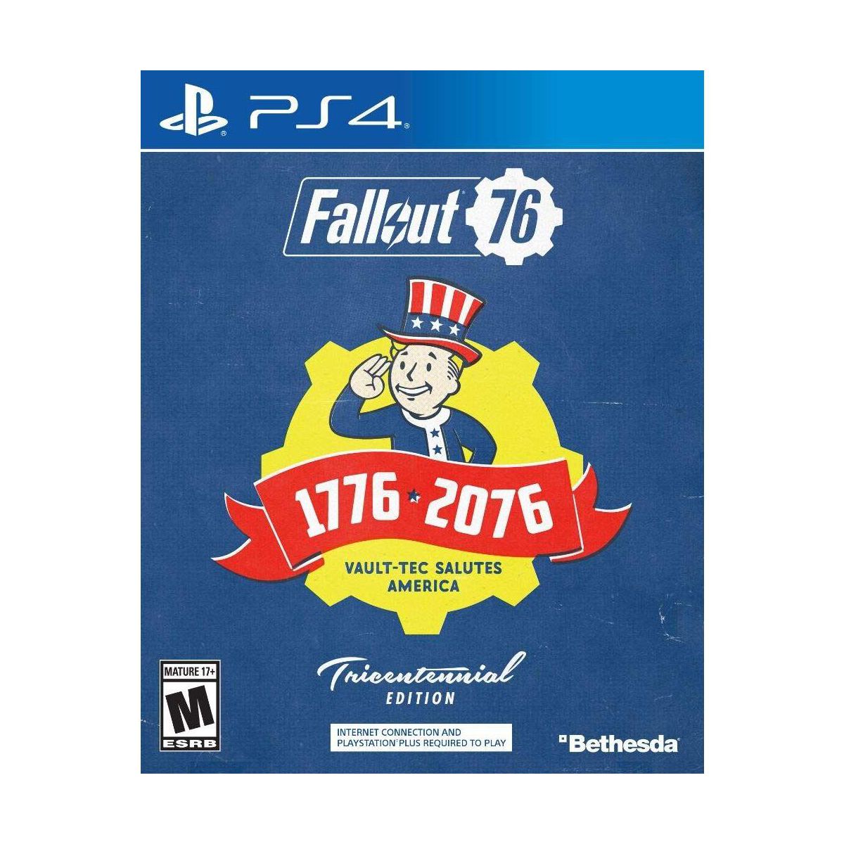 Tricentennial Fallout 76 - Tricentennial Edition for PlayStation 4 Bethesda Game Studios, the award-winning creators of Skyrim and Fallout 4, welcome you to Fallout 76, the online prequel where every surviving human is a real person. Work together, or not, to survive. Under the threat of nuclear annihilation, youll experience the largest, most dynamic world ever created in the legendary Fallout universe. Reclamation Day, 2102. Twenty-five years after the bombs fall, you and your fellow Vault Dwellerschosen from the nations best and brightest emerge into post-nuclear, Genre role playing game Features You will Emerge! Multiplayer finally comes to the epic open world RPGs of Bethesda Game Studios. Create your character with the S.P.E.C.I.A.L system and forge your own path in a new and untamed wasteland with hundreds of locations. Whether you journey alone or with friends, a new and unique Fallout adventure awaits. Mountain Splendorland!