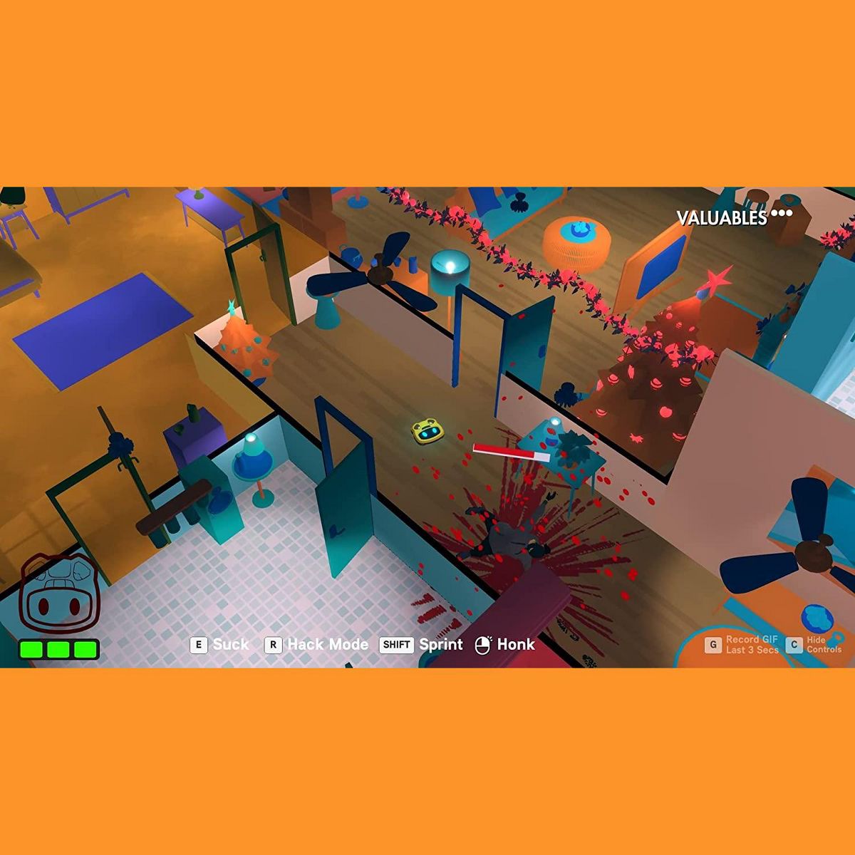 Roombo: First Blood from Samurai Punkand Limited Run Games for the Sony PS4 is a comedic, top-down, stealth-action game about being a robot vacuum cleaner and fending off burglars from your home.Hack smart-home gadgets like lights, doors and various appliances to set up traps, or improvised weapons from objects around the house. Hide under furniture, set your trajectory and plow into your enemies, knocking them over with such force that they go flying, then munch them up when they’re down.But make sure you don’t leave too much blood on the carpet, because you’ll need to make sure the house is clean before the family gets home. Only you can save Christmas and show these burglars that justice sucks.This is a short experimental game featuring 6 difficulty scenarios set in one stage and an unlockable gallery of concept art!Features:The prequel to JUSTICE SUCKS: RECHARGED.Hack smart-home gadgets like lights, doors, and various appliances to set up traps, or improvised weapons from objects around the house.Hide under furniture, set your trajectory, and plow into your enemies, knocking them over with such force that they go flying, then munch them up when they’re down.