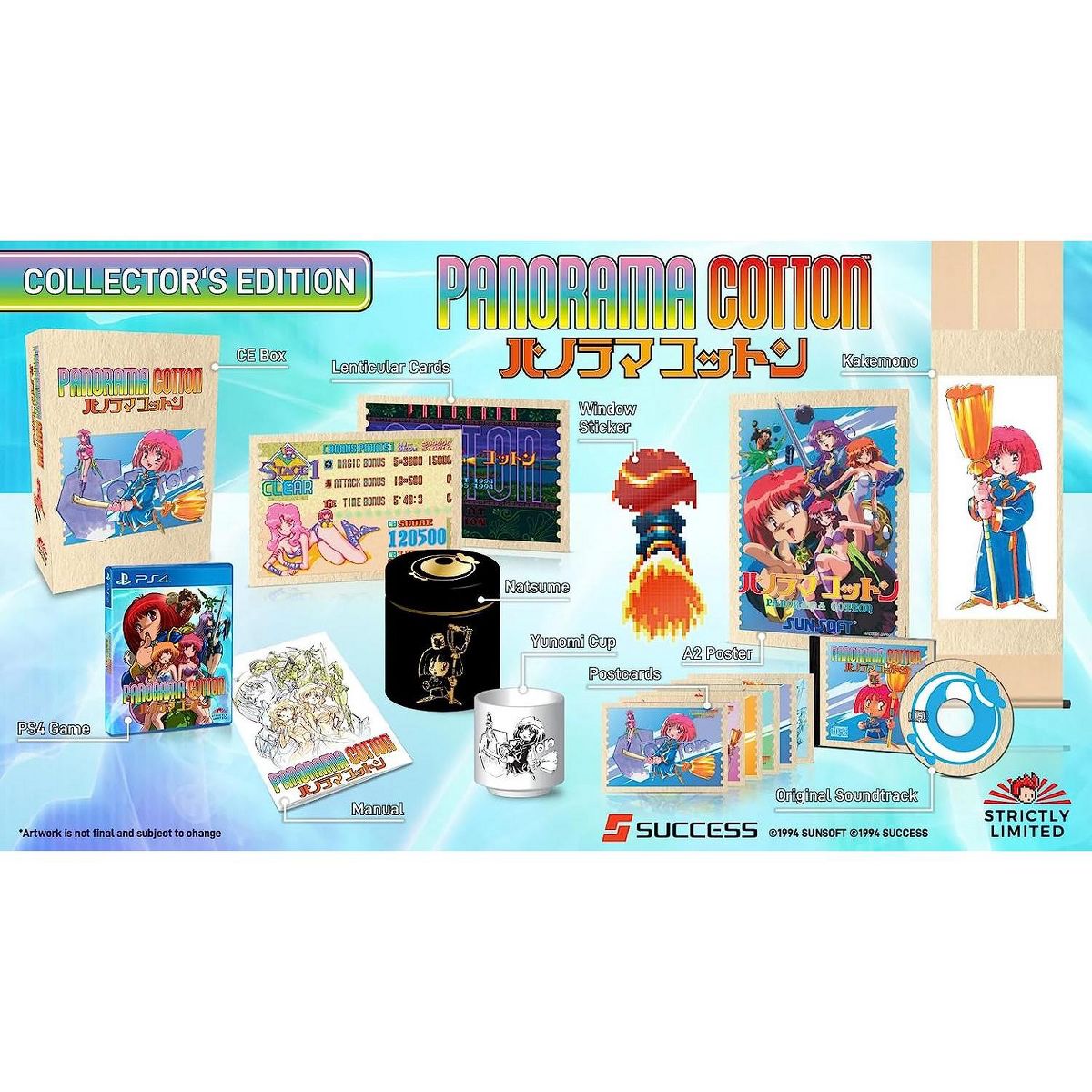 The groundbreaking 3D-scrolling Cute 'em Up is back in Panorama Cotton from Strictly Limited Games for the Sony PS4!Collector's Edition contains: Collector's Edition Box, Playstation 4 Game, Natsume, Yunomi Cup, Window Sticker, 2 Lenticular Cards, 6 Postcards, A2 Poster, Kakemono, OST and a Manual!The game's main character is Nata de Cotton, a witch with unquenchable craving for candy called Willow. She is accompanied by the fairy Silk, who Cotton saved the world with once before. Silk is approached by her sister Knit, who tells her that Queen Velvet has been acting strange. Identifying the source of her behavior as a burnt Willow, Silk tries to dispose of it, but Cotton crosses her path, grabs the Willow and tries to eat it, only to realize that it has been burned. She doesn't care much about the queen or the kingdom, but is angered by the fact that someone is burning Willows, so Cotton and Silk set off to stop whoever is doing such evil things! In 1994, Panorama Cotton raised the bar for what's possible on the Mega Drive/Genesis consoles. The game's more colorful pallet makes every stage a treat to look at and fly through!Features:Panorama Cotton Collector's Edition, officially licensed Playstation 4 game. Manual included.Strictly Limited Games exclusive. Individually numbered. Limited to 800copies worldwide.Panorama Cotton, officially licensed Playstation 4 game. Manual included.Join Cotton and Silk on a radical, visually exhilarating, psychedelic adventure!