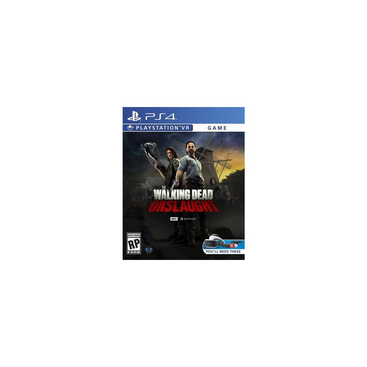 The Walking Dead Onslaught for PlayStation 4Step into the apocalyptic world of the Walking Dead with the official VR game for AMC's global phenomenon, the Walking Dead onslaught, and via the in games visceral progressive dismemberment system, experience realistic and bloody attacks against the undead. Embark on an original story following the events of the war with the savior. Fight as Rick, Daryl, Michonne, and Carol to gather needed resources to rebuild the settlement, restore society, and prepare for an onslaught of walker-slaying mayhem. Defend yourself with real-motion melee and ranged combat, and confront both the horrors and humanity of the ApocalypseFeatures