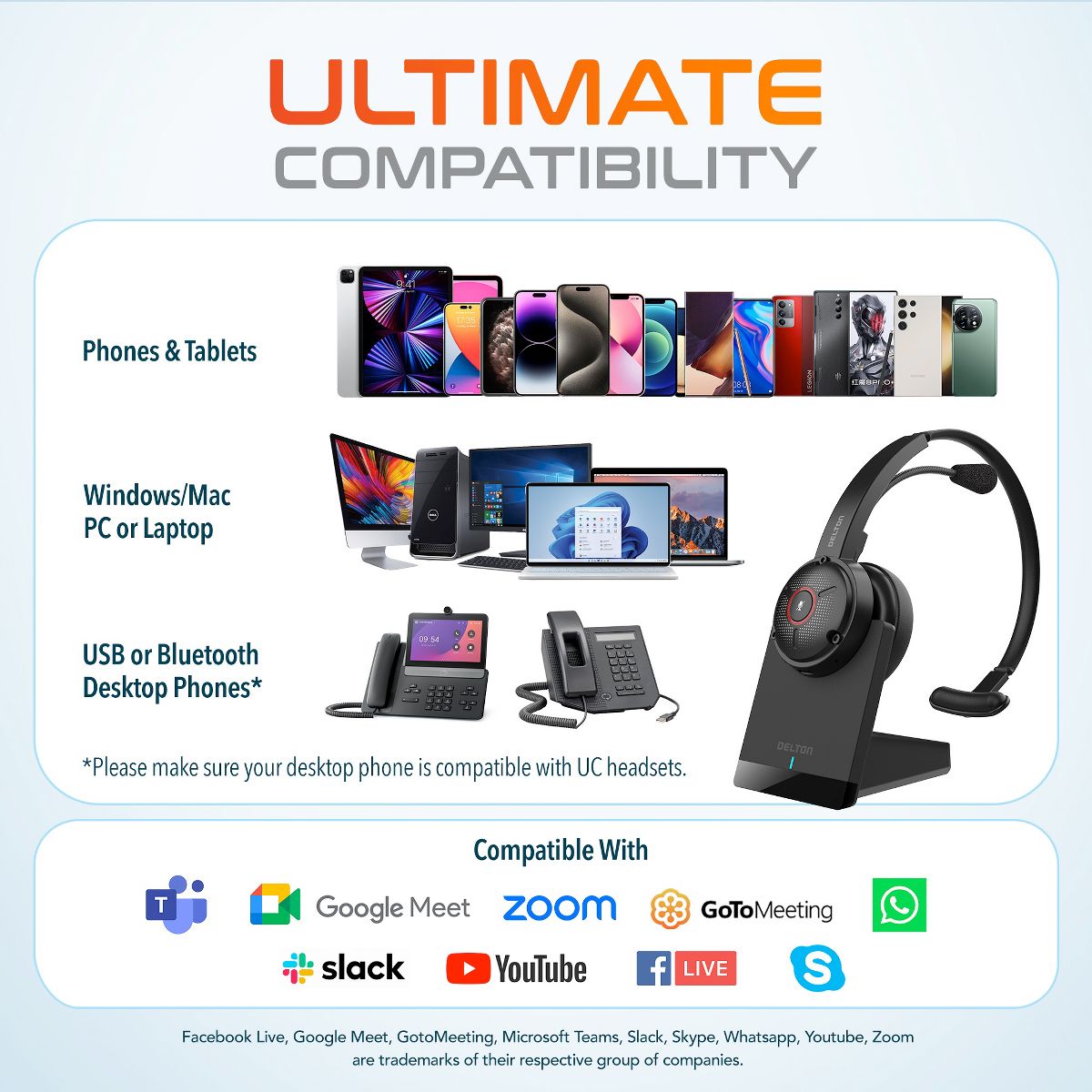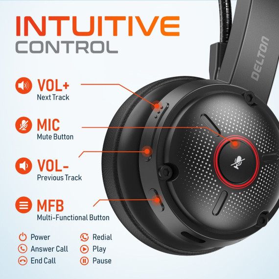 Delton 50X Wireless Noise Canceling Bluetooth Computer On Ear Headset