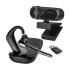 Stay connected seamlessly with our Bluetooth 5.0 USB headset, offering 100 hours of talk time and 110 hours of playtime for uninterrupted productivity. Enjoy crystal-clear communication in any environment with Environmental Noise Canceling (ENC) and dual microphones, while noise reduction technology enhances focus during calls. Compatible with popular platforms like Zoom and Microsoft Teams, this headset with a microphone for PC effortlessly integrates into your workflow. Comfort is prioritized with plush ear cushions and an ergonomic design, while the portable case ensures easy storage and charging via USB-C. Enhance your video calls with our 1080p HD webcam with a stand, featuring auto-focus and a wide-angle lens for professional-quality visuals. Complete with privacy features and versatile mounting options, streamline your communication setup effortlessly.