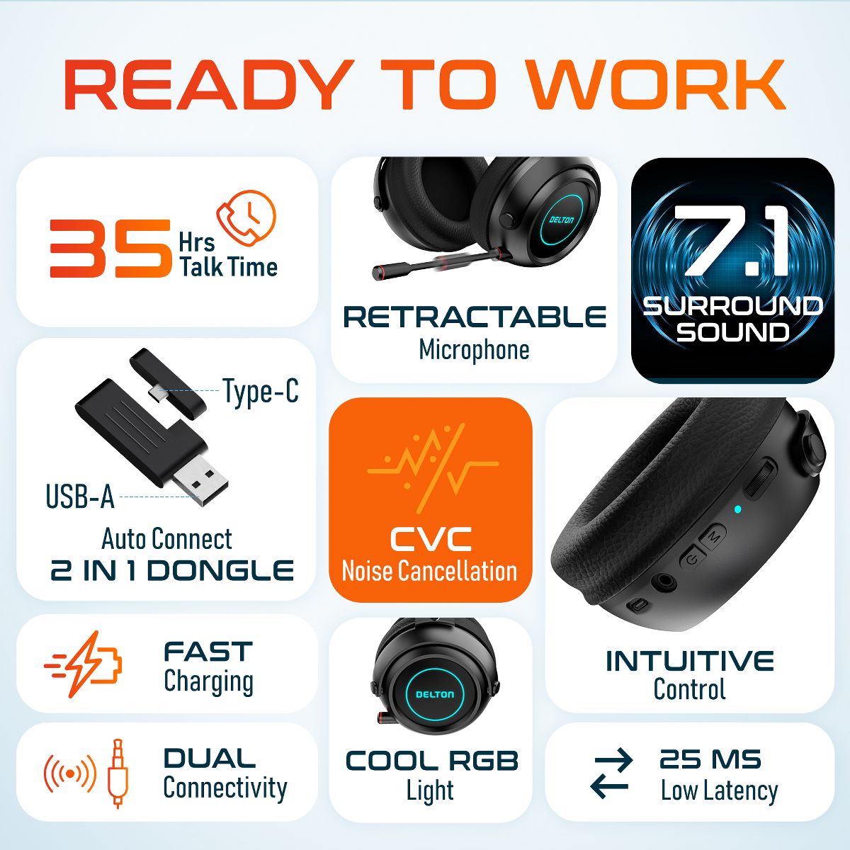 Level up your gaming experience with the Delton G520 Wireless Bluetooth Gaming Headset.