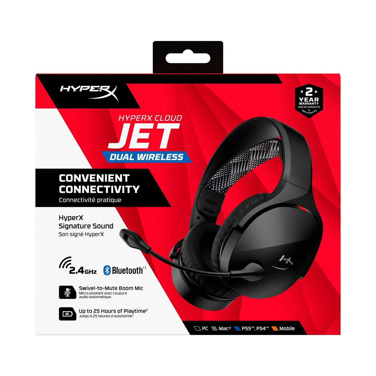 Designed for both rising gamers and those upgrading from entry-level gear, the HyperX Cloud Jet dual wireless headset offers a seamless experience with 2.4GHz and Bluetooth® 5.3 connectivity. Effortlessly switch between PC, console, and mobile devices while enjoying rich audio delivered by 40mm drivers for an immersive gaming experience.