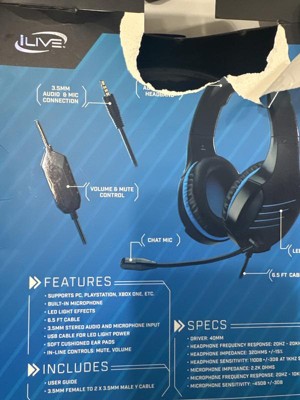 The iLive Electronics™ IAHG19B Gaming Headphones are universally compatible (PC, PlayStation, Xbox etc.) and offer the best that gaming can offer. Comfortable ear pads and an adjustable headband makes these a dream for your longest gaming sessions while the built-in mic, 6.5 ft. cord and in-line controls (mute/volume) meet all your gaming needs. A USB plug for LEDs adds a touch of fun while you destroy your enemies and become a gaming champion._