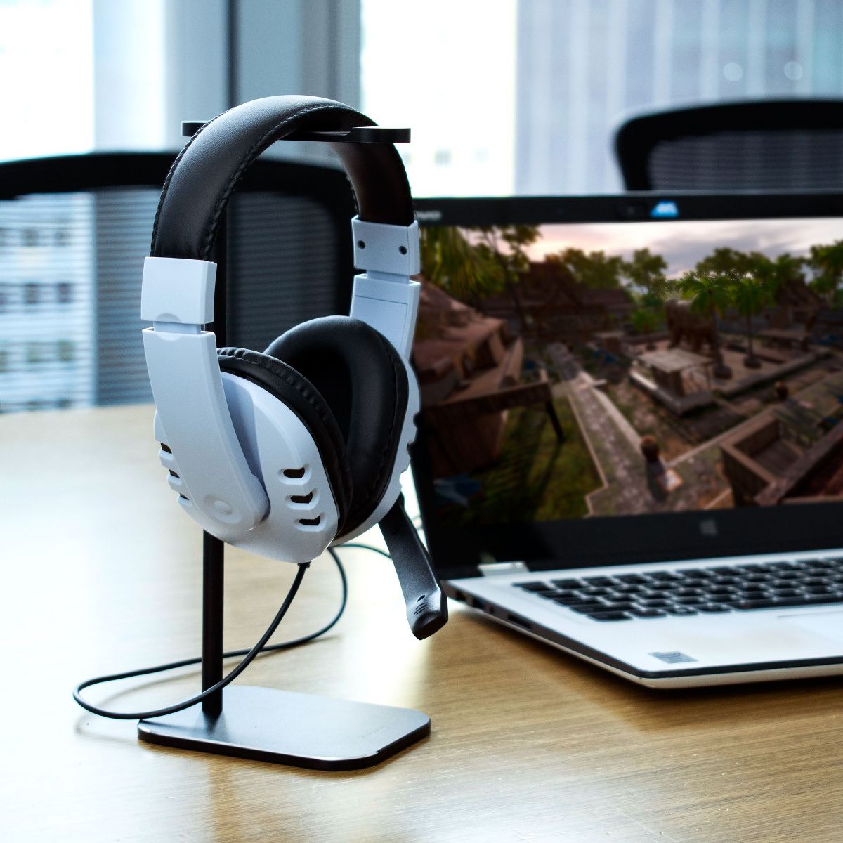 Immerse yourself in the ultimate gaming experience with this multi-platform gaming headset. Compatible with PS5, PS4, Nintendo Switch, Xbox Series X/S, Xbox One, PC, laptop, tablet, cell phone, TV, and other devices with a 3.5mm audio jack. Please note, an additional adapter (Not Included) is required for older Xbox controllers. Enjoy superior sound quality with over-ear headphones featuring a magnetic driver for capturing every detail, from atmospheric sounds to stealthy footsteps. Gain a competitive edge with accurate sound positioning and 3D stereo sound, delivering crisp highs and deep bass for an immersive gaming experience. Communicate clearly with the built-in high-sensitivity microphone that cancels out background noise, allowing for strategic discussions. The flexible mic adjusts easily for in-game and online chats. Designed for comfort, the lightweight headset features soft memory protein earmuffs and a stretchable metal headband for extended wear. The 5.8 feet cable offers flexibility and durability. The package includes a light blue 3.5mm wired gaming headset with a microphone. Connect effortlessly to multiple devices for an immersive gaming experience across platforms. Use this universal headphones for gaming, music, movies, and more. Elevate your gaming with this versatile headset, providing superior sound, clear communication, and comfort. Get ready for epic adventures with this 3.5mm wired gaming headset. Additionally, PCs with sound cards that have separate microphone and speaker connections, identified by pink and green plastic around the jack, require a 3.5mm TRRS splitter adapter (not included).