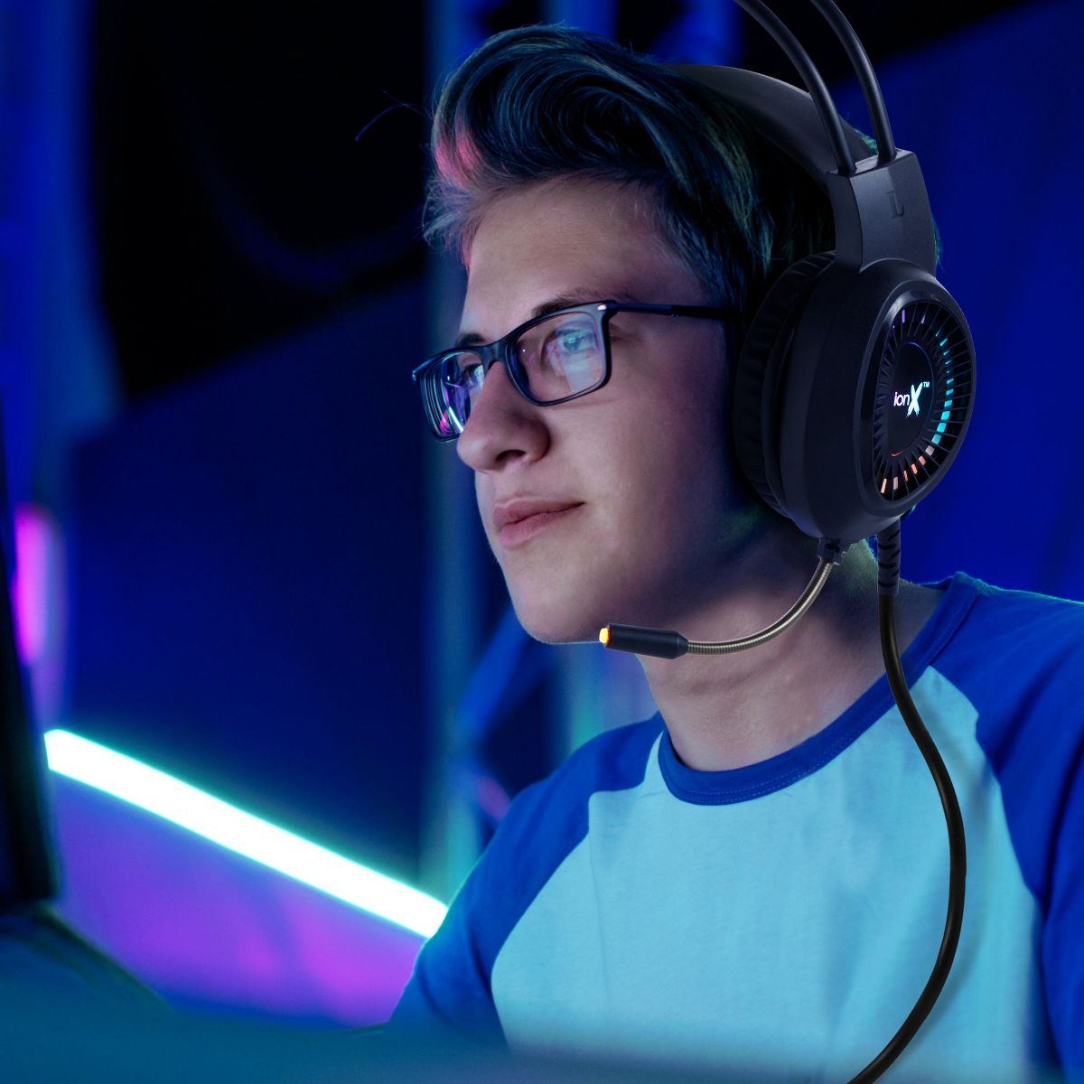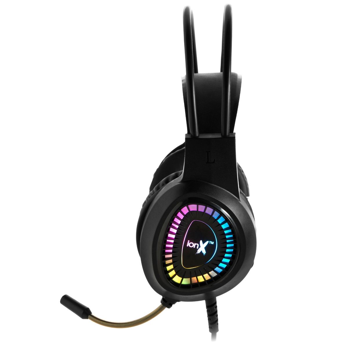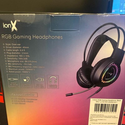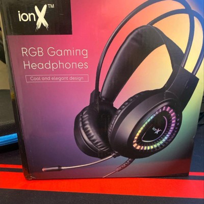 ionX Wired Gaming Headphones with Microphone, Over the Ear 3.5mm, RGB Lighting, Black - 40mm Audio Driver