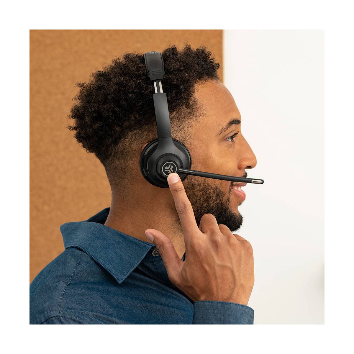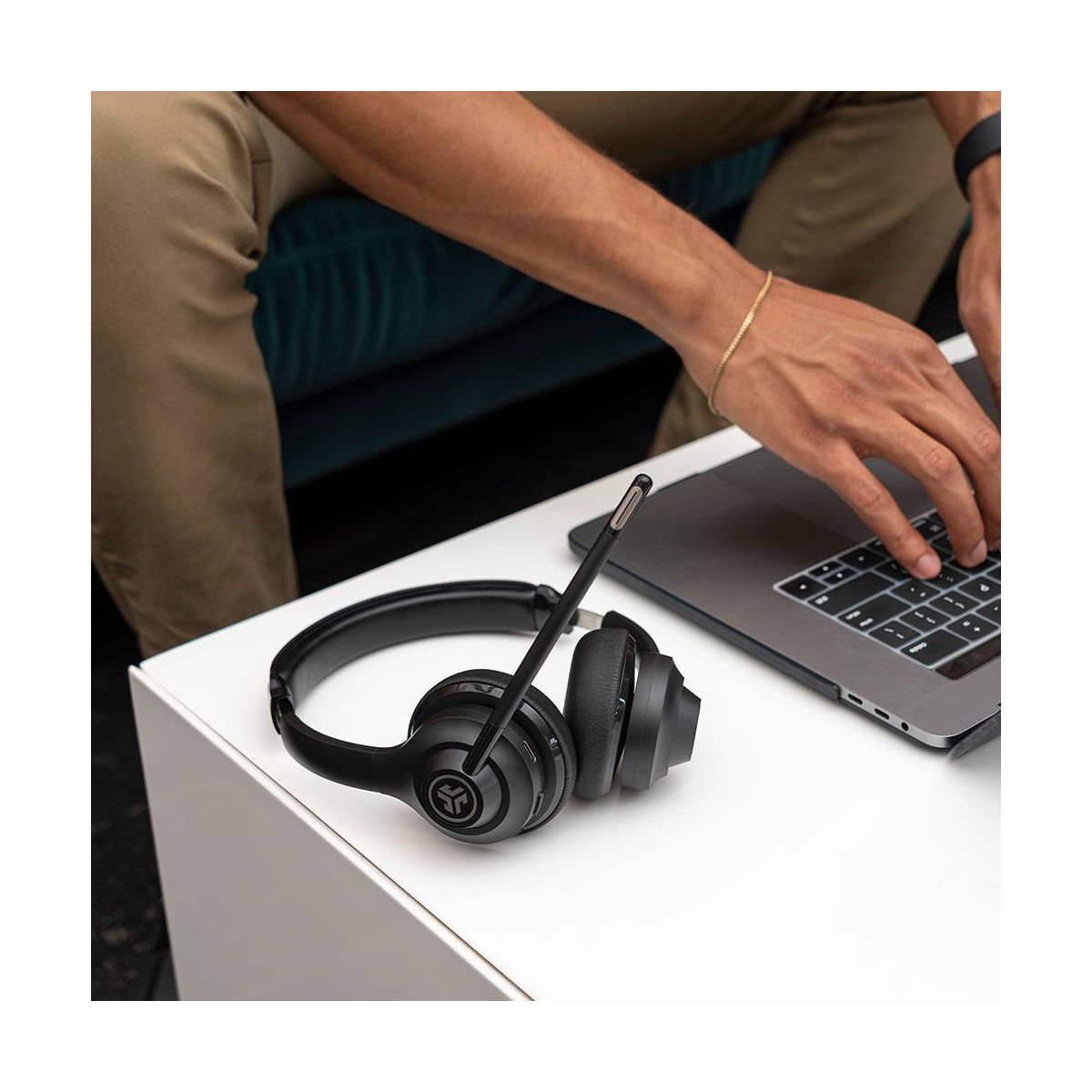 Meet the GO Work wireless on-ear headset, perfect for everyday office life. Enjoy clear calls and video calls – and never forget to un-mute with the mute-indicator-light at the end of the boom mic. The powerful boom mic can be rotated up, when you’re focused independently or down to allow colleagues to hear just you (not the dog barking or the doorbell). Transition from mobile to laptop without touching any settings and enjoy GO Work wired while stationary at your computer or wireless for more mobility to multitask.