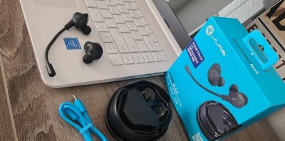 Meet the ultimate solution for the working professional: JLab Work Buds in-ear headset. With 55+ hours of total playtime, you'll have more than enough juice for all your conferences, calls and more. Say goodbye to muffled calls and hello to crystal clear communication with the detachable noise-canceling boom mic that fits either earbud. And, you'll never have to dig through your bag for your earbuds again thanks to the convenient USB-C charging dock that keeps everything organized and charged. Plus, with Bluetooth Multipoint technology and the JLab App, you can switch between devices and customize your sound to your heart's desire.