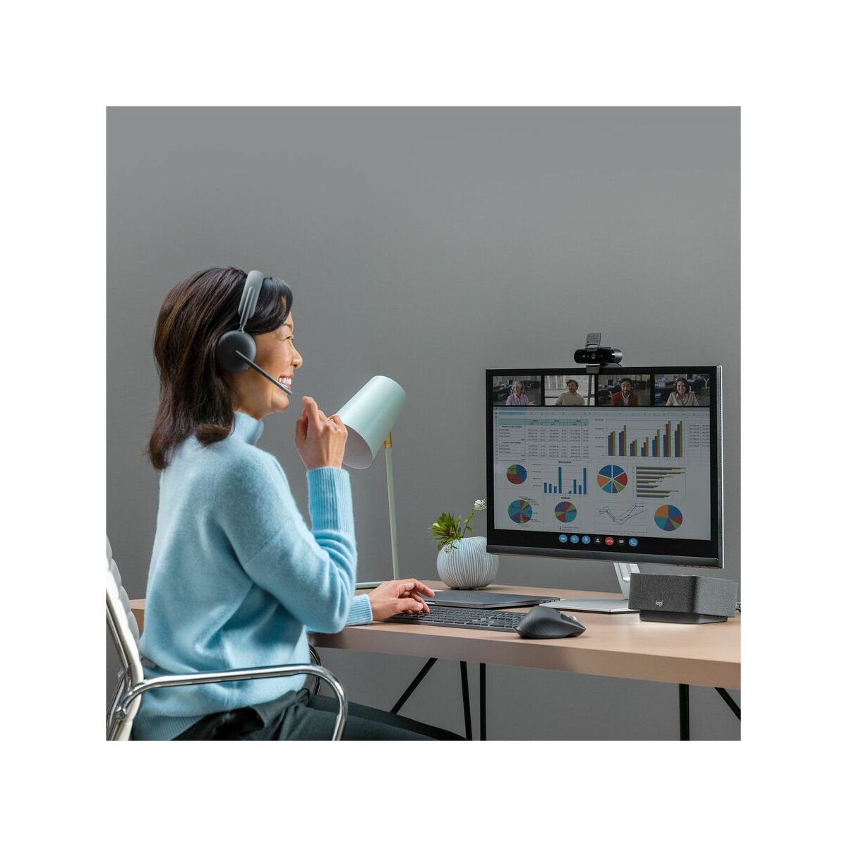 Provide employees with a top-of-the-line business headset that allows them to clearly hear and be heard in calls and meetings - especially in noisy environments. Zone Wireless 2 features AI noise suppression, noise-canceling mics, hybrid ANC, and premium stereo sound. Advanced Call Clarity (enabled with Logi Tune) suppresses far-end ambient noise so employees can hear colleagues better. Four noise-canceling mics elevate the user's voice above background conversations. Hybrid ANC makes it easy to concentrate in noisy environments. Personal EQ in the Logi Tune mobile app automatically adjusts to the wearer's hearing range. The headset also features interchangeable earpads and a replaceable battery for longevity.