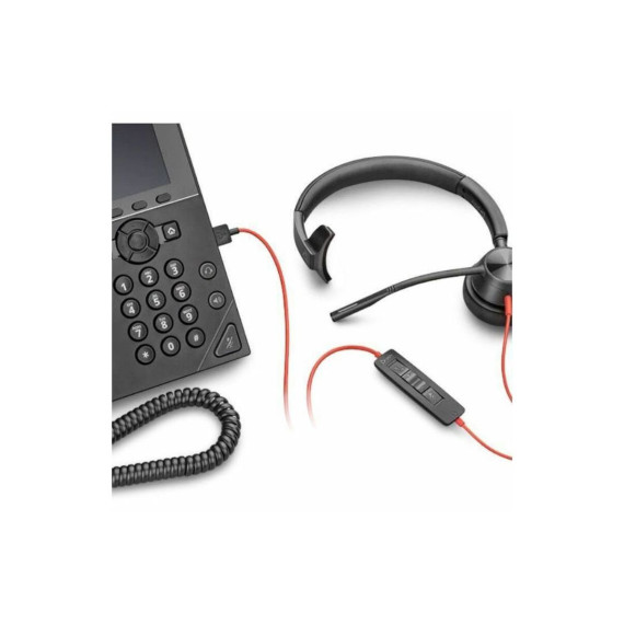 Style, comfort and audio qualityBuilt for style with a sleek design that focuses on comfort and reliability. Poly signature audio quality so you know you will sound great. And intuitive and simple features so every user can connect to their preferred device simply and easily.Connect quickly and easily The Blackwire 3300 Series is completely plug-n-play with USB devices, so users can take calls in the office or on the go. Its robust design delivers reliability you can count on. This is the hassle-free headset you've been looking for.Look good, feel good, sound amazing Boost your on-the-call confidence with professional-quality audio and a customized fit with a headset that can connect to your devices quickly and easily and is ready to go with you wherever you go..High-quality audioMakes collaboration easy with Poly signature audio quality and reliability.Wearing styleMonaural wearing style for those who prefer to leave one ear open. Headset flexibility With professional voice quality and a customized fit, this fully adjustable headset has 180-degree pivoting speakers and a flexible microphone boom. Long-lasting comfort Supports long-wearing comfort with a plush, padded headband and pillow soft ear cushions. Connectivity options Enhanced connectivity for your devices with a USB Type-C cord and tethered USB-A adapter. Optimized for communications platforms An IT manager's dream, this headset was created for communication and is optimized and certified to work with top virtual meeting providers.