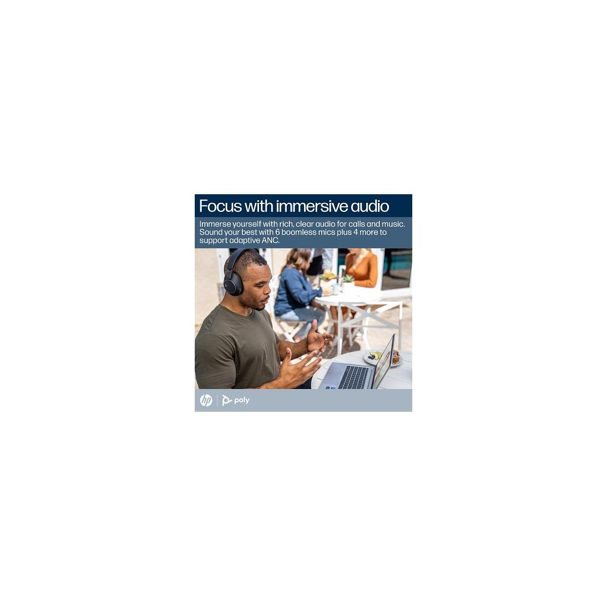 Work where you want and sound your best with the over-ear, boomless Bluetooth® headset. Immerse yourself in rich audio, stay in complete comfort with soft ear cushions and an adjustable headband, and keep focused with adaptive ANC.