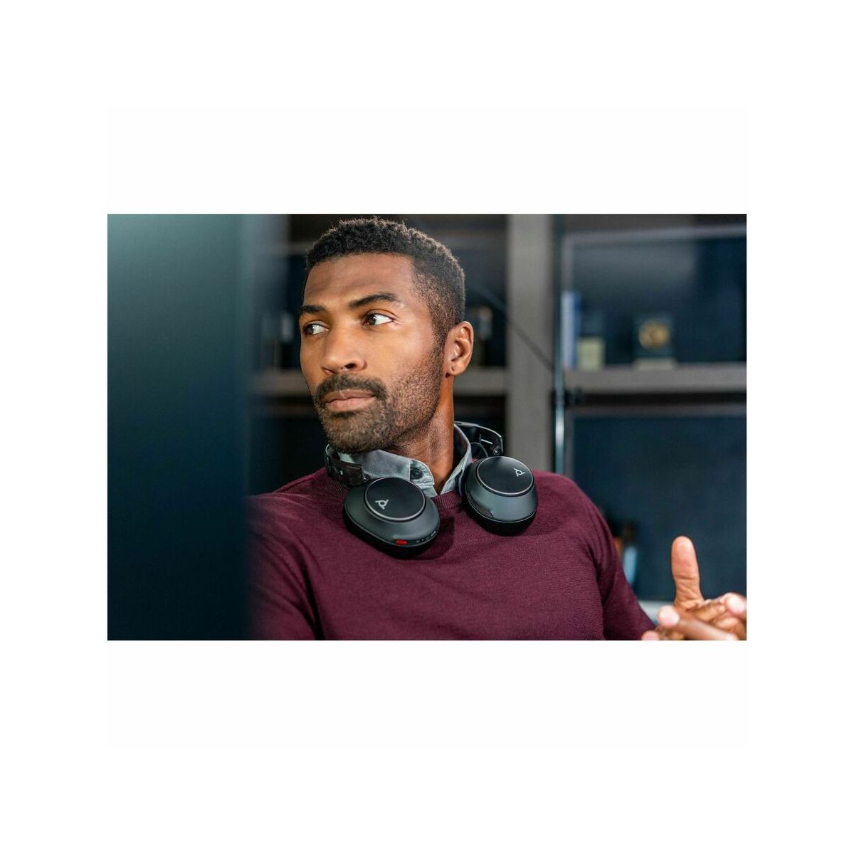 Designed for the way you work Work where you want and sound your best with the over-ear, boomless Bluetooth headset. Immerse yourself in rich audio, stay in complete comfort with soft ear cushions and an adjustable headband, and keep focused with adaptive ANC.Focus with immersive audio Engage in what's important and avoid distractions with a headset that delivers rich, clear audio for calls and music. Work where you want and sound your best with 6 built-in boomless mics plus 4 more to support adaptive ANC.Engineered to work as hard as you Maximize your productivity with the headset engineered to work as hard as you do. Stay in command of your conversations with up to 21 hours of talk time, easy on-ear controls, and smart sensors for automatic call answering.Concentrate in real comfort You'll forget you're wearing a headset with the sleek carbon fiber design, ultra-soft ear cups, and adjustable headband for a weightless fit. Experience long-lasting comfort while you focus on work.Features | Get in the zoneStay focused and keep out the distractions of the outside world with adaptive ANC and over-the-ear design.Take your call anywhereSound your best where you work with 6 built-in microphones for clear transmit audio without the noise - in a boomless design.Extended talk timeWorks as long as you do with up to 21 hours of talk time or up to 24 hours of listen time.Touch controlsControl your calls and play/pause music with easy-touse touch controls. With just one click, you can mute yourself with a dedicated button.Easy management via Poly LenTake control of your deployment from anywhere via remote management with Poly Lens cloud-based device management software.Certified for Microsoft Teams Full Microsoft Teams certification takes your Microsoft Teams experience to the next level with a button for instant access to the app and more. Plus, this headset meets Microsoft Teams Open Office premium microphone specification.