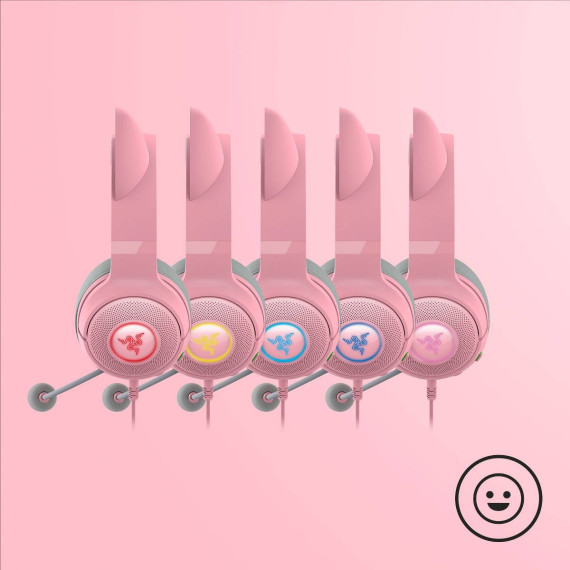 Create your cutest stream persona in killer kitty style with the new Razer Kraken Kitty Edition V2. Stand out and turn heads with unique kitty ears powered by Razer Chroma RGB, as you put on a show with stream reactive lighting and a crystal-clear mic.