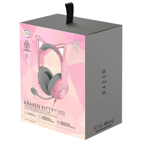 Razer Kraken Kitty V2 USB Headset with RGB Kitty Ears - Quartz Edition: Gaming Headphones