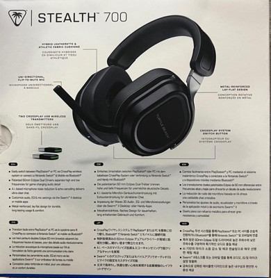 The Turtle Beach® Stealth™ 700 wireless multiplatform gaming headset for PlayStation®, PC, Steam Deck™ and mobile is redesigned for a 3rd generation of premium gaming prowess. The all-new CrossPlay wireless system with dual USB transmitters and simultaneous Bluetooth® connectivity delivers quick and easy connection to gaming consoles, PC & mobile devices. Huge, 60mm Eclipse™ Dual Drivers deliver unparalleled audio quality, and the Gen 3, flip-to-mute mic with A.I. noise cancellation allows for exceptionally clear voice accuracy. Plus, using the Swarm™ II companion app, you can adjust your microphone & audio settings to your exact, customized preference. Dominate for hours in complete comfort with a best-in-class 80-hour battery life, and memory foam ear cushions.