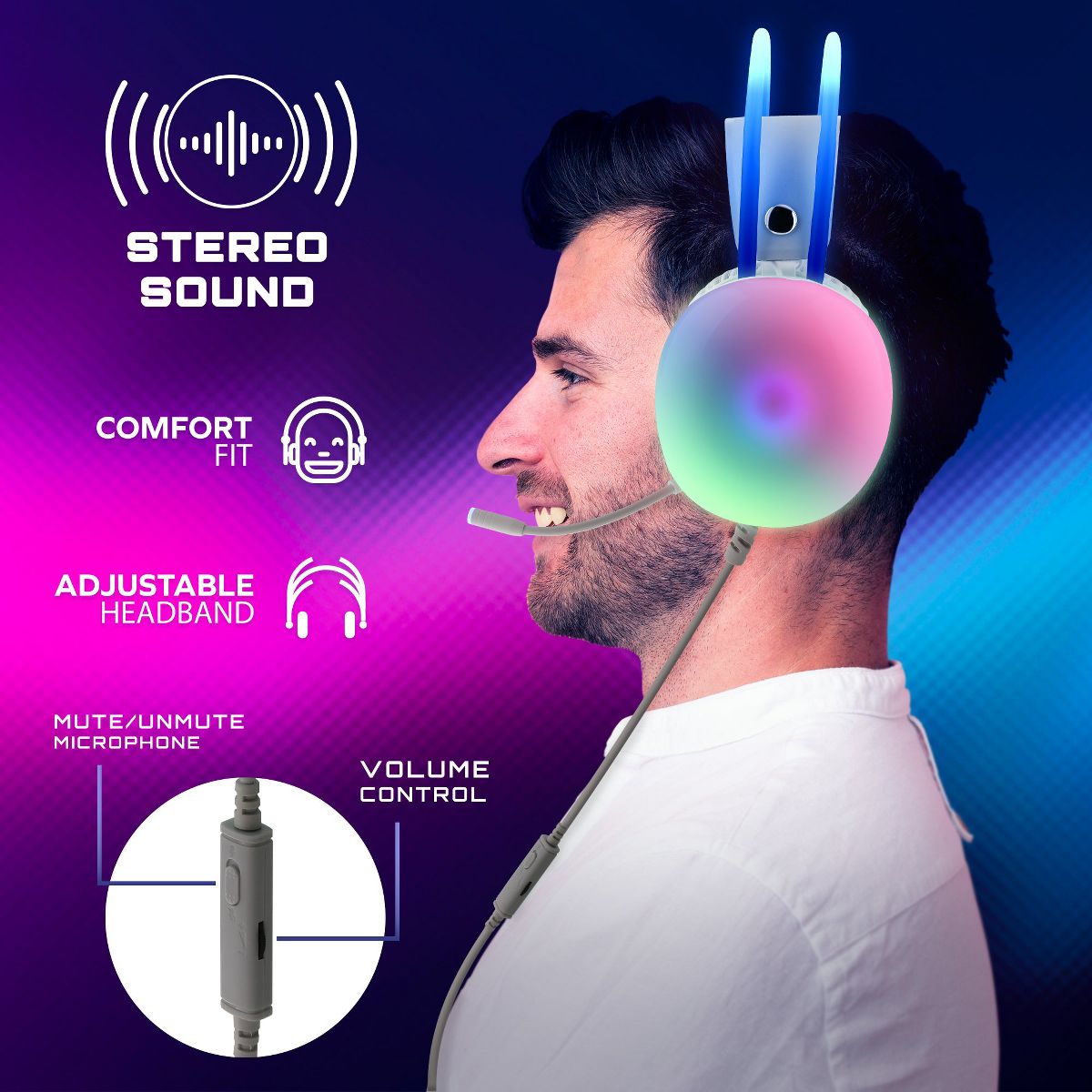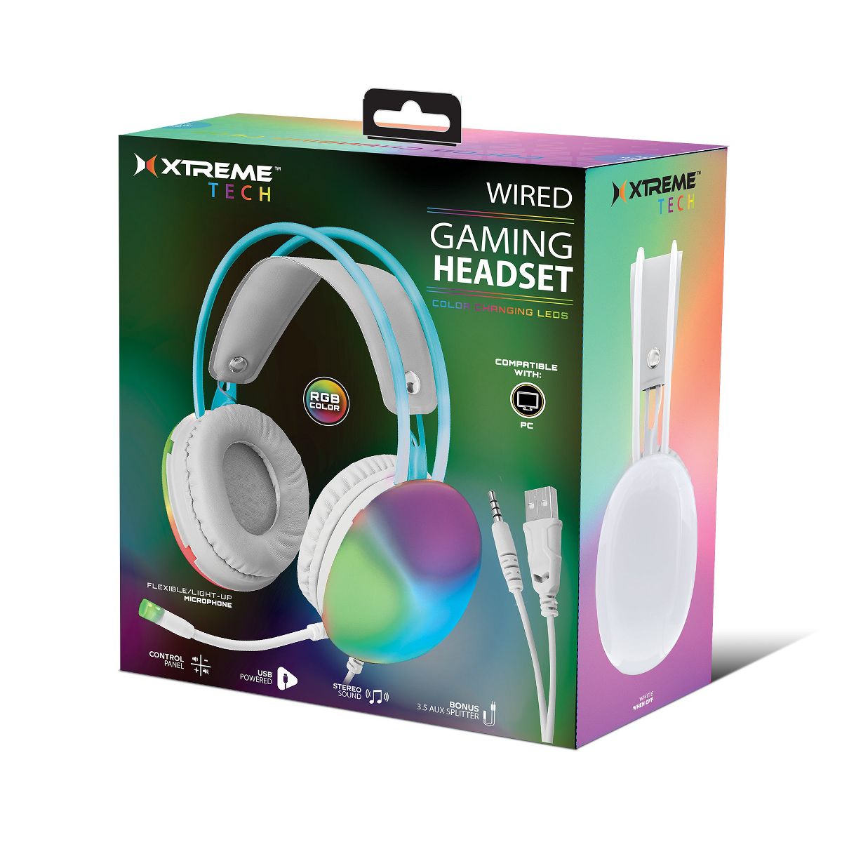 Xtreme Wired Rainbow Multicolor Gaming Headset w/ Microphone: Stereo Surround 50mm Drivers, PS4 PS5 Mac Xbox PC