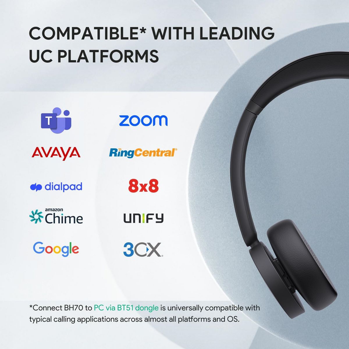 The versatile Yealink BH70 is suitable for various scenarios, including office, home, or on-the-go use, effectively meeting all your needs. Equipped with Yealink's advanced 2nd generation microphone noise cancellation technology, three AI-powered microphones intelligently and efficiently reduce background noise to ensure a seamless call experience. Designed ergonomically based on extensive user studies, the BH70 provides exceptional comfort for extended wear throughout the day.