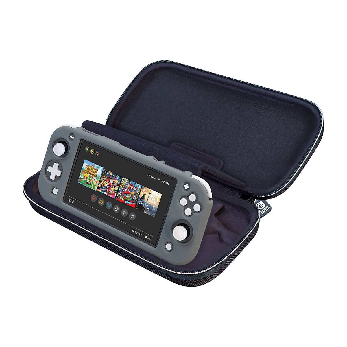 Protect and organize your Nintendo Switch, Nintendo Switch Lite, or Nintendo Switch OLED Hardware in this Officially Nintendo Licensed Deluxe Travel Case. RDS Industries has manufactured this case to Nintendo's stringent and high standards. This Light Blue Nintendo Switch case has a durable hard-shell exterior that protects against accidental drops or knocks. A vacuum-formed felt-lined interior holds the system and games securely in place. Most importantly, a padded divider pocket is put inside and is designed specifically to protect Switch's sensitive analog sticks. Two bonus multi-game cases are included that hold up to 8 games. NNS40PB