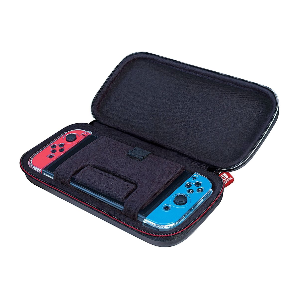 Protect and organize your Nintendo Switch, Nintendo Switch Lite, or Nintendo Switch OLED Hardware in this Officially Nintendo Licensed Deluxe Travel Case. RDS Industries has manufactured this case to Nintendo's stringent and high standards. This Nintendo Switch case has a durable hard-shell exterior that protects against accidental drops or knocks. A vacuum-formed felt-lined interior holds the system and games securely in place. Most importantly, a padded divider pocket is put inside and is designed specifically to protect Switch's sensitive analog sticks. Two bonus multi-game cases are included that hold up to 8 games. NNS40