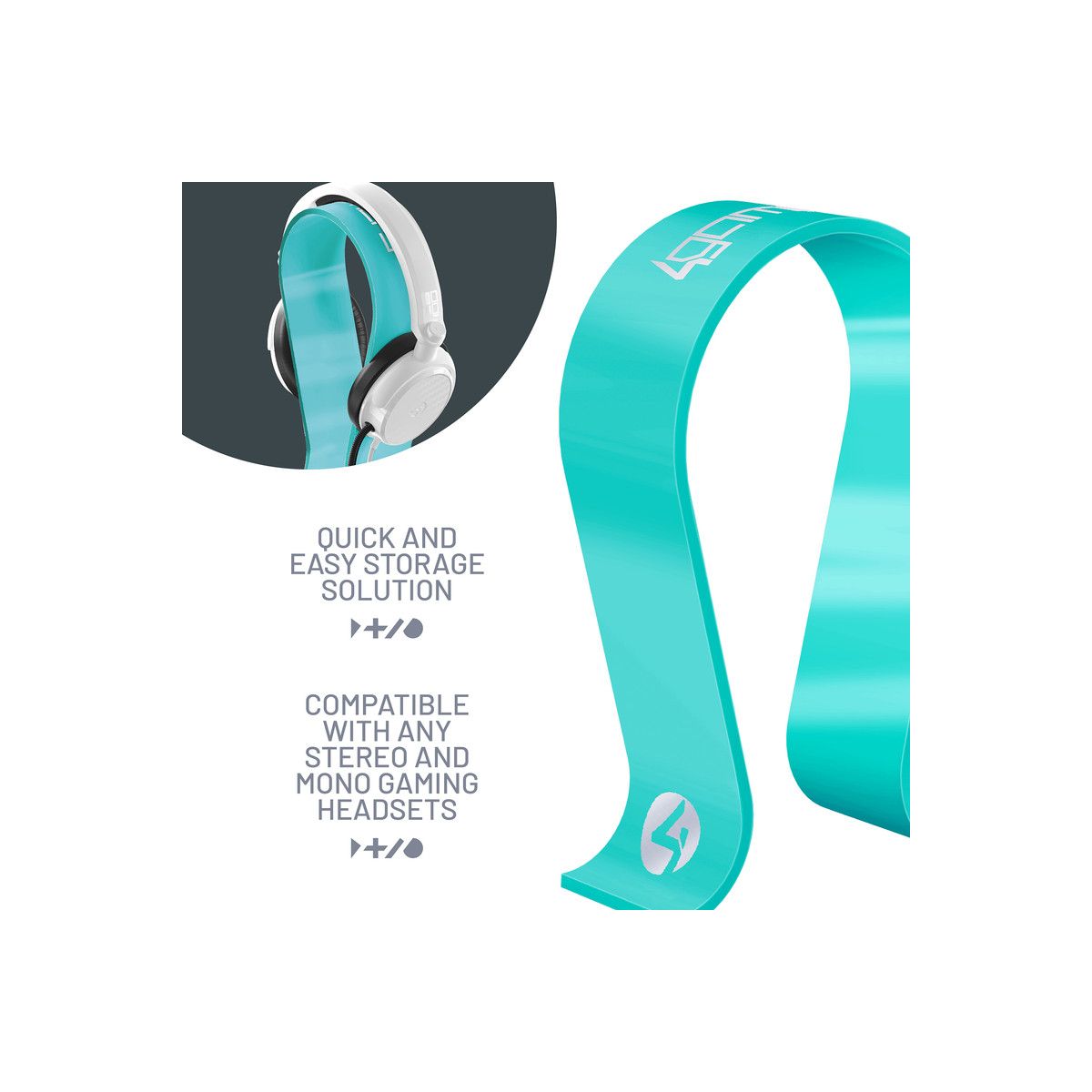 STEALTH Headset Stand, compatible with most headsets for PS4, PS5, XBOX One, Series S, Series X, Nintendo Switch, PC and mobile devices.Perfect for safely storing your gaming gear when you're not in action and maintaining your headset's shape.Matte aqua finish.