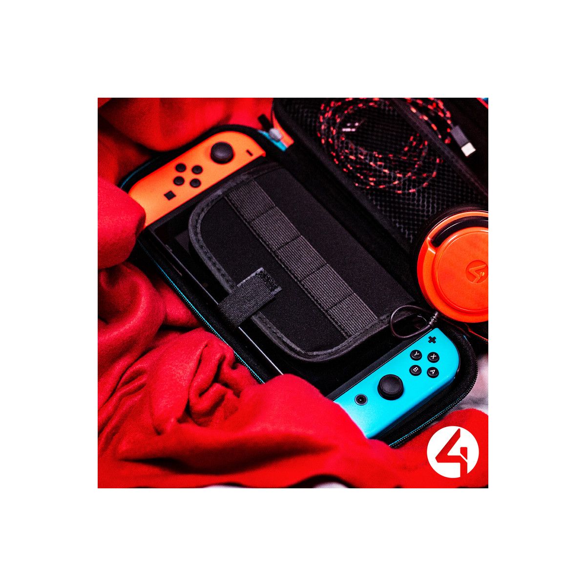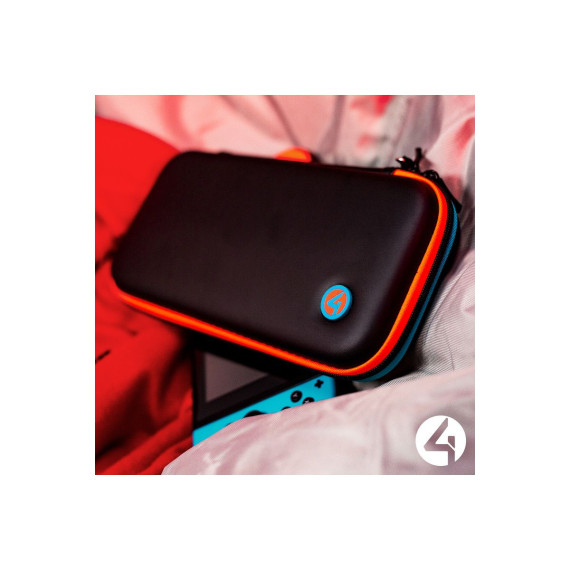 4Gamers Hard-Shell Premium Travel Case for Nintendo Switch, Switch Lite & Switch OLED - Neon Red and Blue