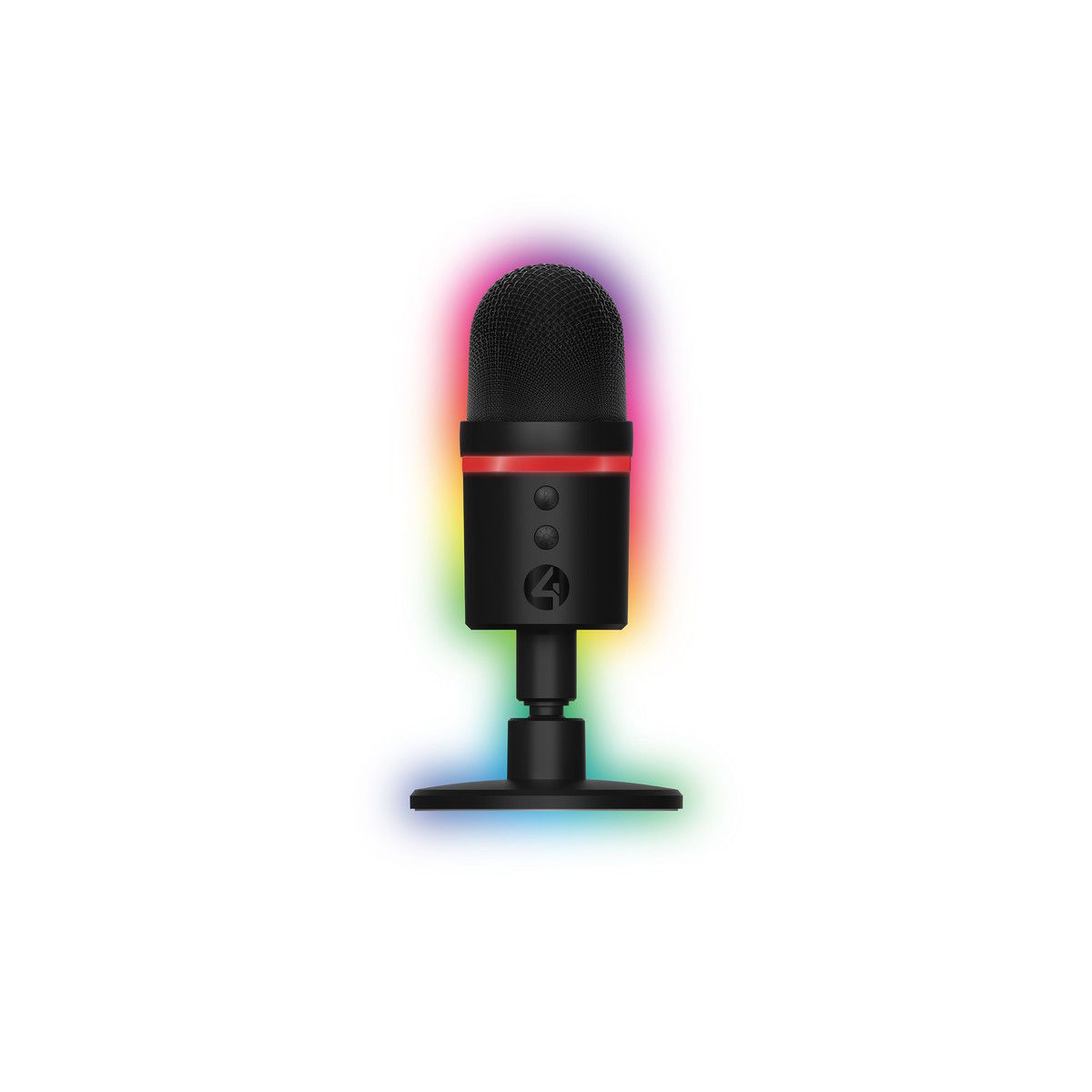 Light Up Streaming Microphone compatible with PC, PS4 and PS5 with supercardioid pick-up pattern and noise-cancelling function to reduce background noise. With its compact design, this small but mighty mic features a weighted base with 360 tilt, plus a built-in shock mount for clear streaming and uninterrupted recording.Muting your mic and controlling the 12 RGB lighting effects is at the touch of a button.Powered by USB for an effortless setup, simply plug in, and you're ready to go.