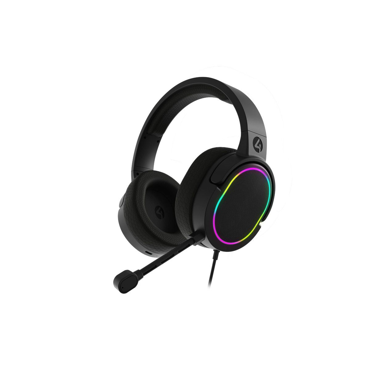 Light Up Gaming Headset, compatible with PS4, PS5, Xbox One, Series X/S, Nintendo Switch, PC & mobile devices.Features animated lighting effects with off mode that you can recharge with the included USB-C cable.Designed for comfort with breathable, soft-foam ear cushions & an adjustable padded headband. Built with premium speakers with airflow chambers and a flexible mic for clear audio & chat, perfect for immersive gameplay.Easily control volume with integrated controls & mic mute function.Features a matte-black finish with glossy accents.