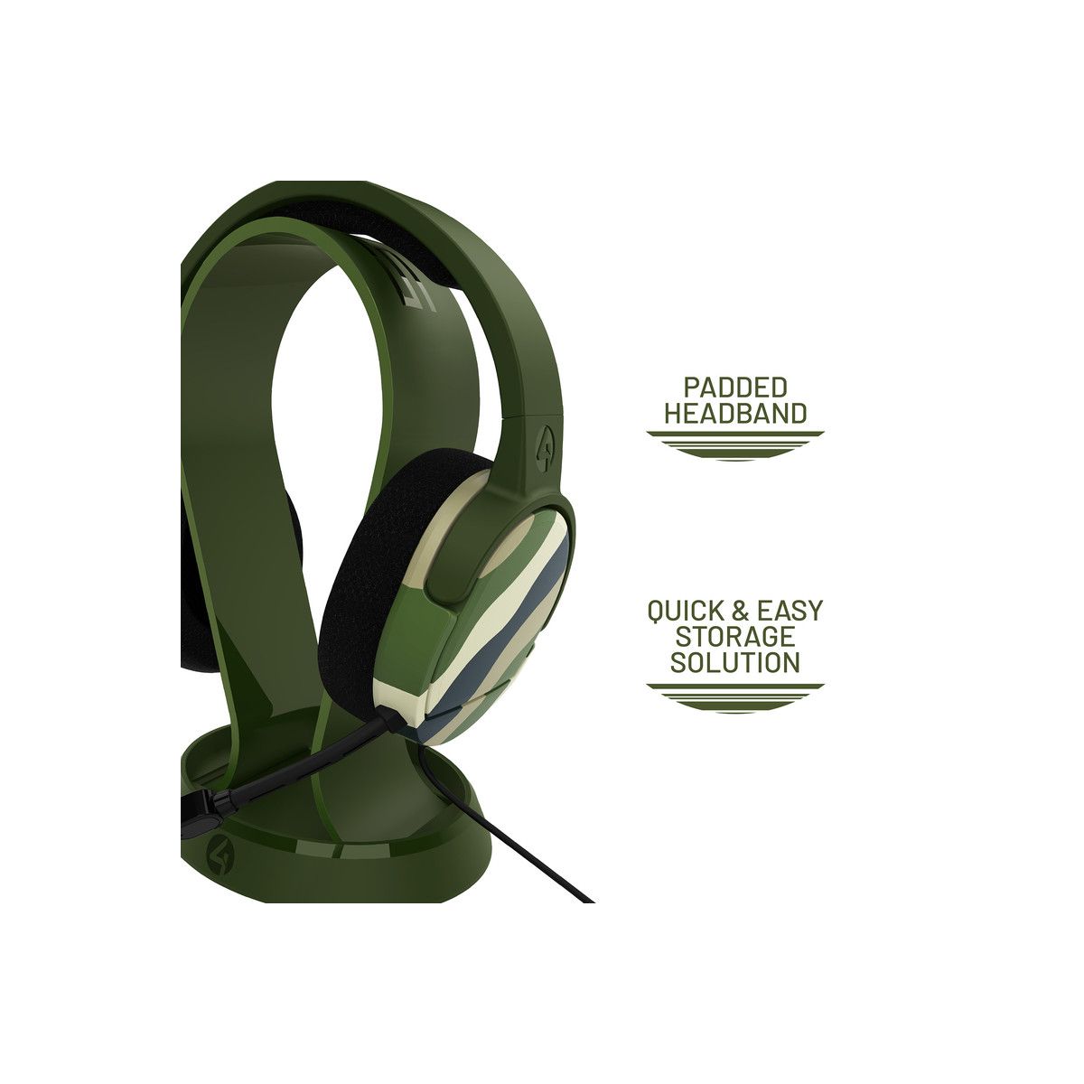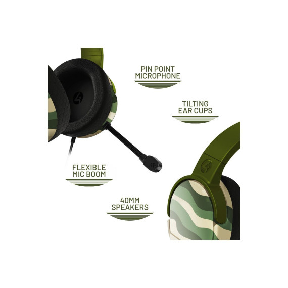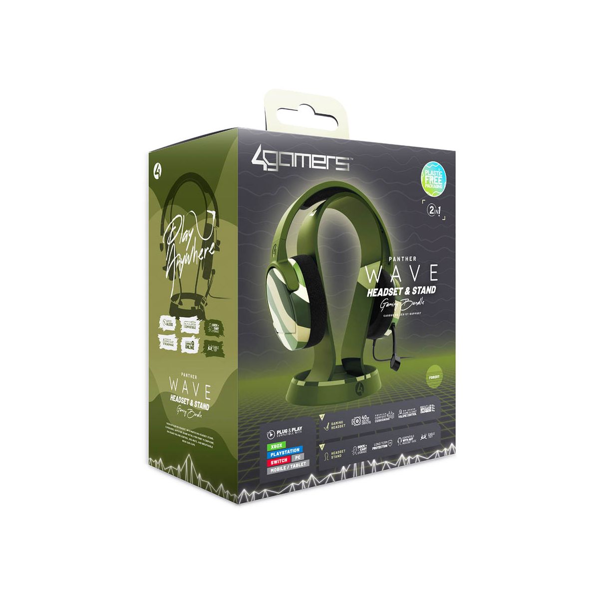 4Gamers PANTHER Wave Gaming Headset & Stand with Base PS4 PS5 XBOX Switch, Switch 2 & PC - Forest Green
