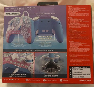 Officially licensed by Nintendo, the PowerA Advantage Wired Controller for Nintendo Switch 2 system combines beauty and performance. Each controller is designed with care and provides ample features at wallet-friendly prices. The Hall Effect thumbsticks prevent stick drift, increasing precision and longevity. Integrated C Button enables quick access to fun GameChat features. Program two mappable Advanced Gaming Buttons on-the-fly. Plug in your headset for stereo sound and adjust audio using on-board audio controls, and also enjoy smooth thumbstick control thanks to a pair of embedded anti-friction rings. Includes a 10 ft. (3m) USB-C cable, plus PowerA backs all products with a 2-year limited warranty to reinforce quality commitment.