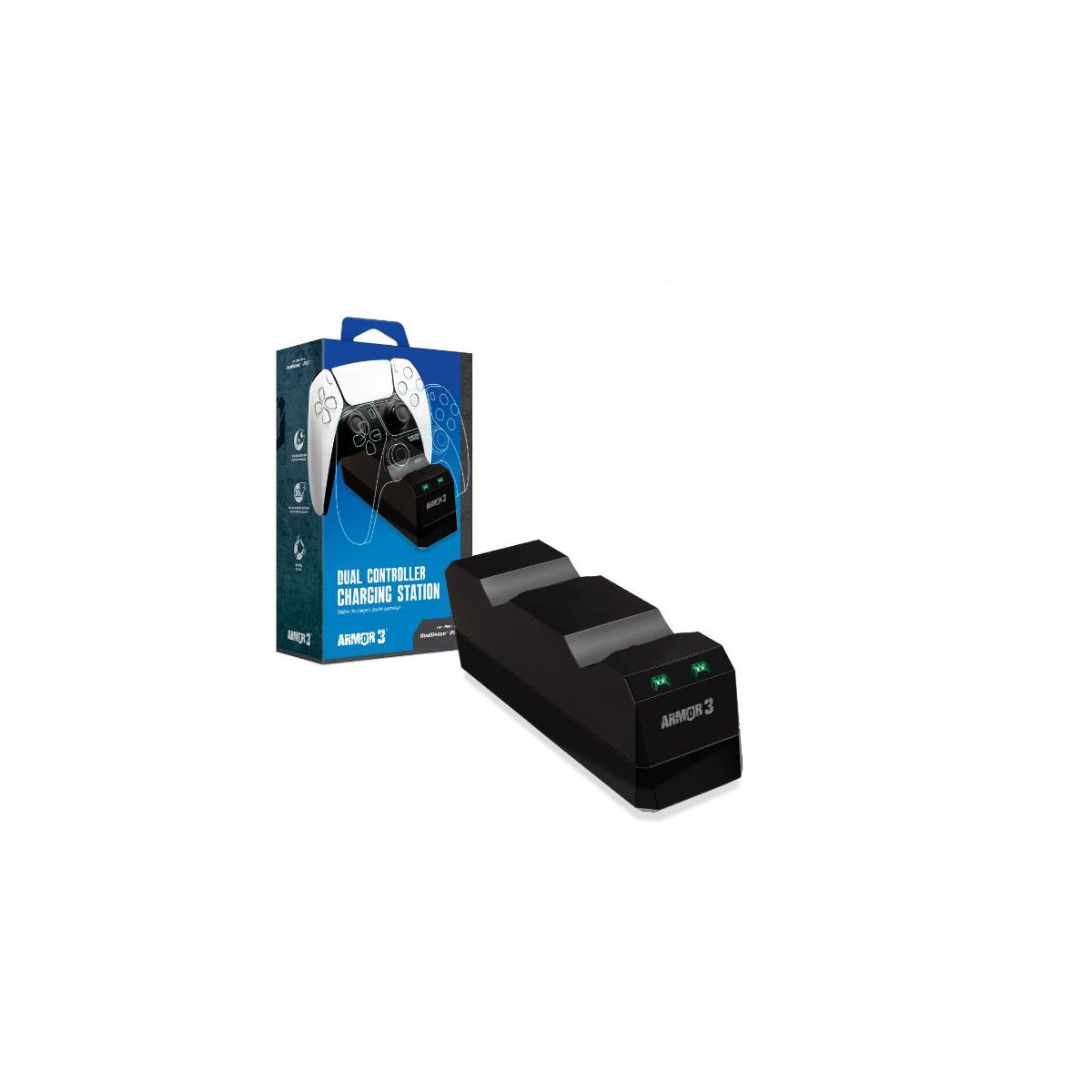 Charging dock for two (2) DualSense™ controllers (PS5™). Keep your gaming sessions uninterrupted with our Dual Controller Charger. This sleek and compact charging dock is designed to charge two controllers simultaneously, ensuring that you’re always ready for action. The charger features LED indicators that show the charging status of each controller, so you know when they’re ready to go. With its quick-charge technology, you can fully charge your controllers in just a few hours. The secure docking system holds your controllers in place, preventing accidental disconnections. Compatible with a range of controller models, this dual charger is the perfect accessory to keep your gaming gear organized and powered up. Whether you're a casual gamer or a pro, this charger is an essential addition to your setup. • LED charging indicators • 3 Ft. Type-C power cable • Charging dock for two (2) DualSense™ controllers (PS5™)