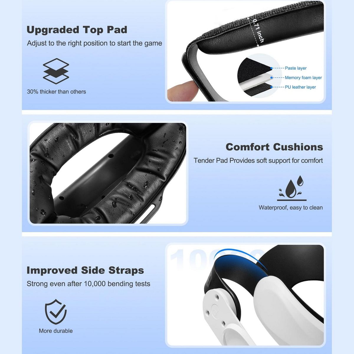 Beboncool Adjustable VR Head Strap for Meta Quest 2/3/3S Gaming Console VR Accessories