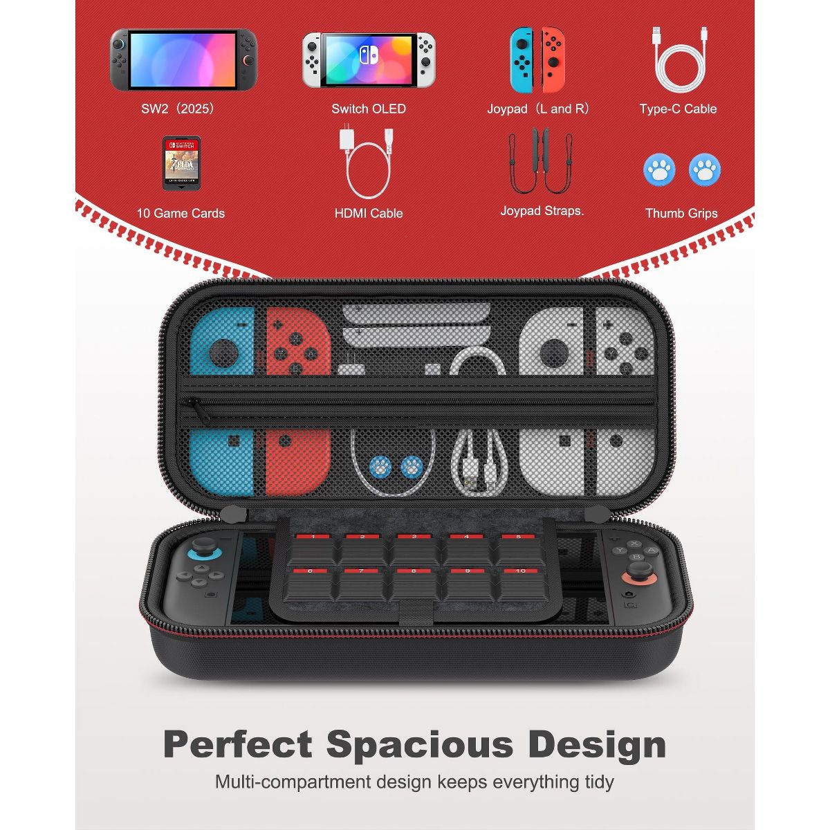 The Ultimate Portable Gaming Accessory for Nintendo Switch! Perfect for travel, outdoor adventures, or daily use, this waterproof Switch travel case ensures military-grade protection for Gen 2, OLED, and original models. With durable, scratch-resistant material, it shields your console from bumps, spills, and dust. The organizational pockets keep accessories (controllers, chargers, earbuds) neatly stored, while the removable shoulder strap offers easy portability. Universal fit for all Nintendo Switch models, making it a versatile gaming bag for gamers of all ages. Choose from customizable patterns or sleek designs to match your style! Ideal as a holiday gift set or summer gaming kit. Lightweight yet tough—perfect for road trips, school, or casual play!