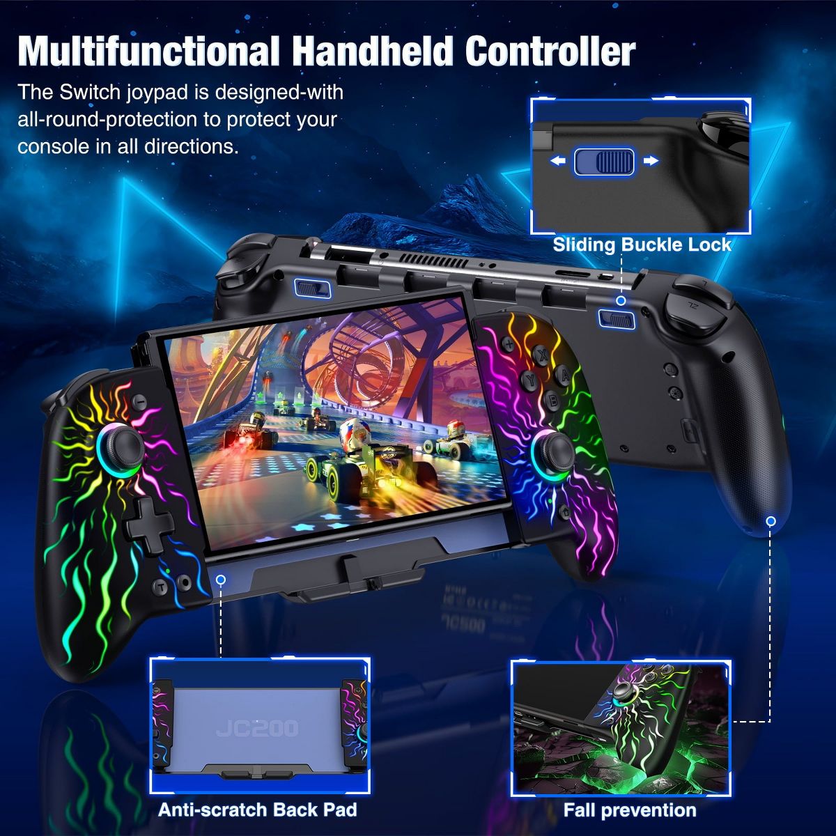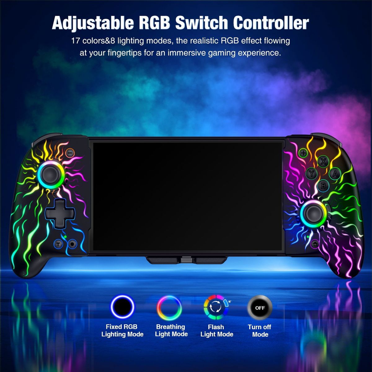 Experience the ultimate gaming control with our dedicated Switch Controller. Designed specifically for the Nintendo Switch and Switch OLED host, this pro controller enhances your gaming experience in every way. Feel the action come to life with the dual motor vibration, immersing you deeper into the game. With the somatosensory function, enjoy precise motion control that adds a new level of interactivity. Take your gameplay to the next level with the burst function, offering both manual and automatic bursts with adjustable speed settings. With 17 dazzling light-emitting effects and adjustable brightness, the illuminated dual joysticks create a visually stunning gaming environment. And with a comfortable and large grip, enjoy extended handheld play without sacrificing comfort. Elevate your gaming experience with our Switch Controller and unlock your full gaming potential.(No NFC)