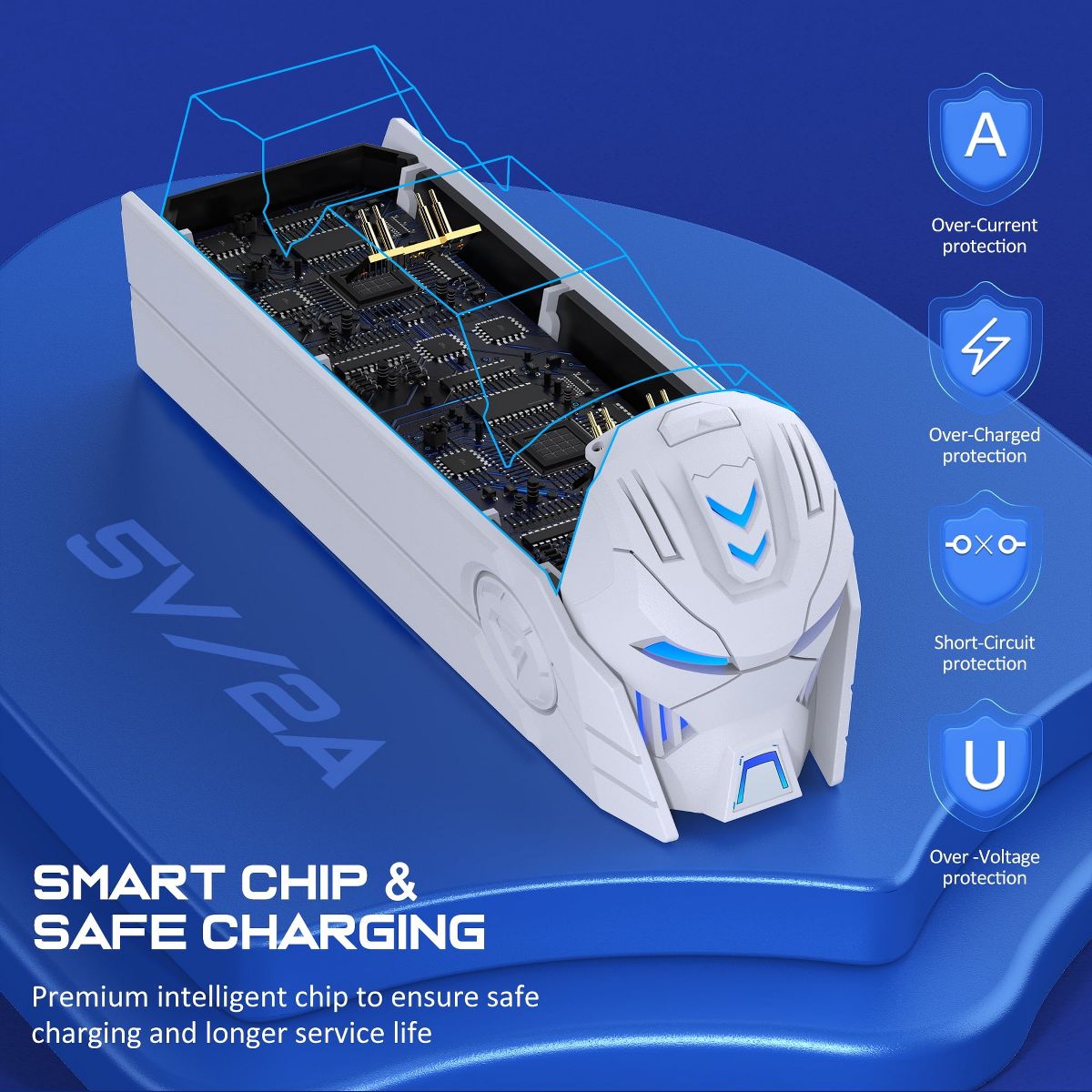 Beboncool PS5 Controller Charger 2.5Hr Fast Charge & Space Saving Design White