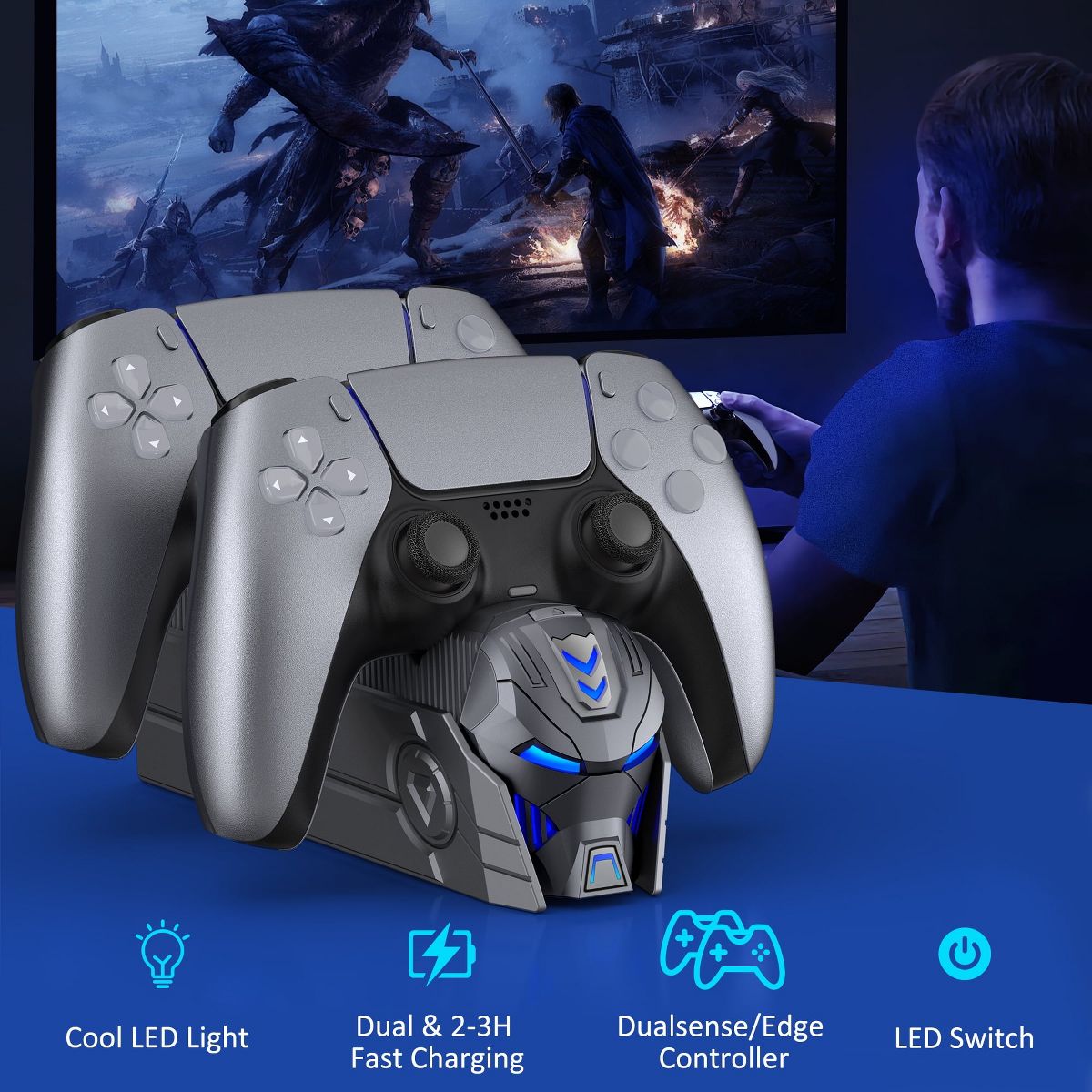 The Beboncool PS5 Controller Charging Station offers a convenient and efficient way to keep your PlayStation 5 controllers powered up. This sleek and compact accessory rapidly charges two DualSense controllers simultaneously in just 3 hours, providing up to 10 hours of gameplay. Equipped with LED indicators and an upgraded smart chip, it ensures safe and reliable charging, protecting your controllers from common issues like short circuits and overcharging. Designed to save space on your gaming setup, this versatile station doubles as both a charging hub and controller storage, Which making it an ideal companion for PlayStation 5 enthusiasts.
