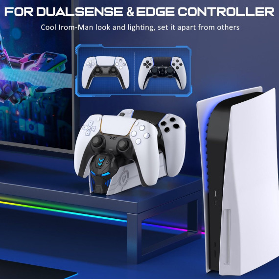 The Beboncool PS5 Controller Charging Station redefines convenience for PlayStation 5 gamers, offering a sleek, space-saving solution to keep your DualSense controllers always ready for action. This dual-port charger powers two controllers simultaneously, delivering a full charge in just 3 hours—perfect for quick gaming sessions or overnight recharging. With its upgraded smart chip technology, it ensures safe, efficient charging, preventing overcharging, short circuits, and battery damage to prolong the lifespan of your controllers.