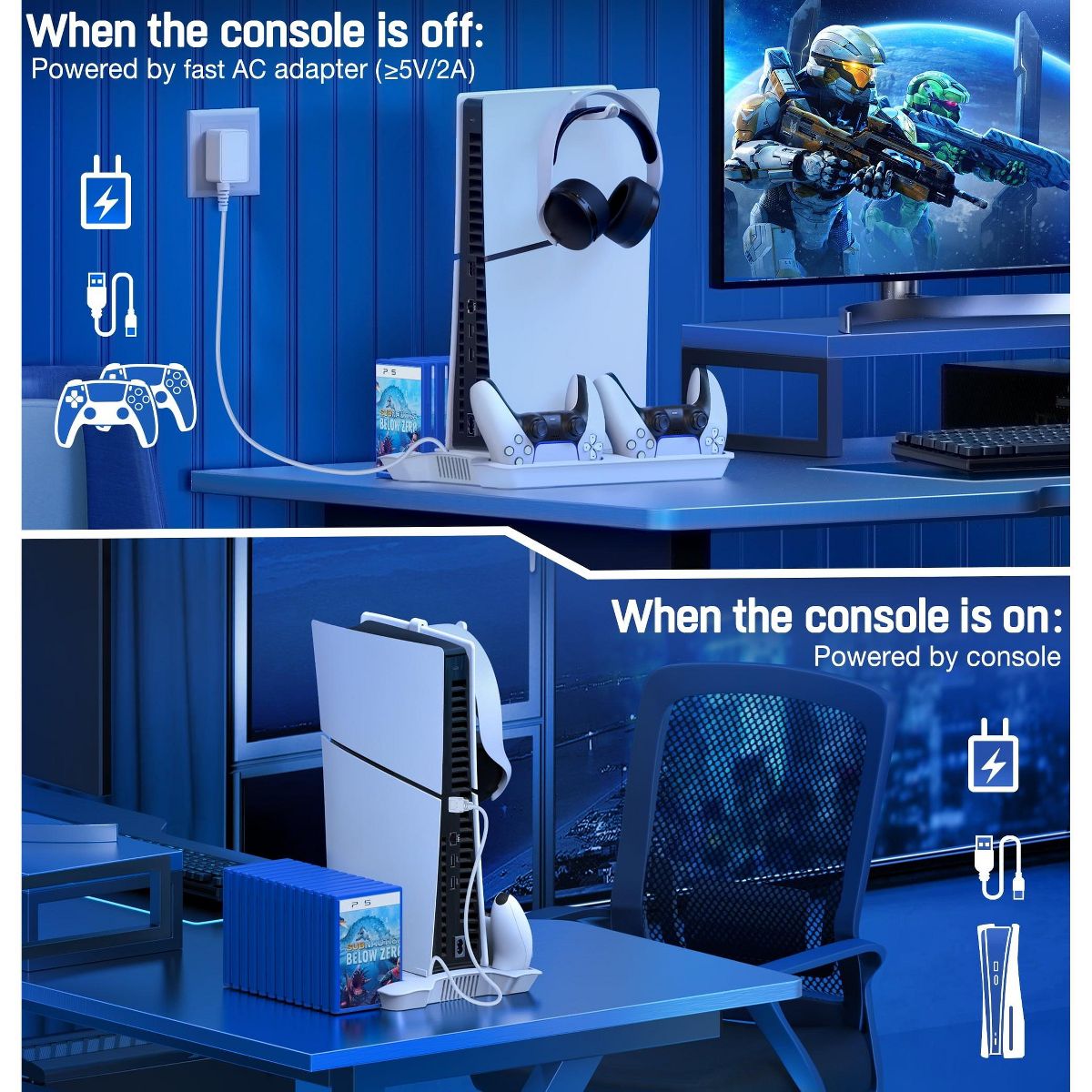 PS5 COOLING FAN STAND & CHARGER STATION – Enhanced Cooling, Fast Charging, and Space-Saving Design