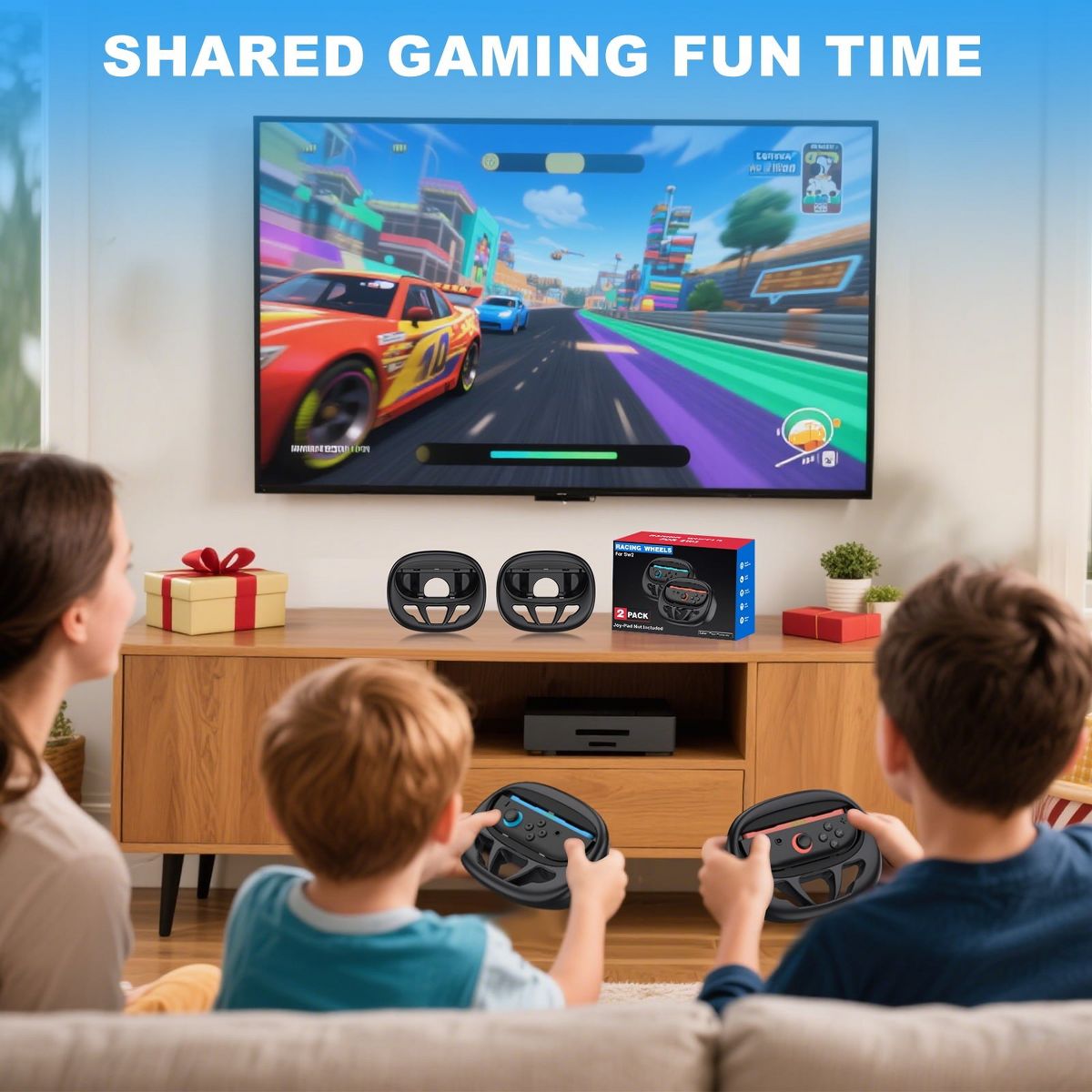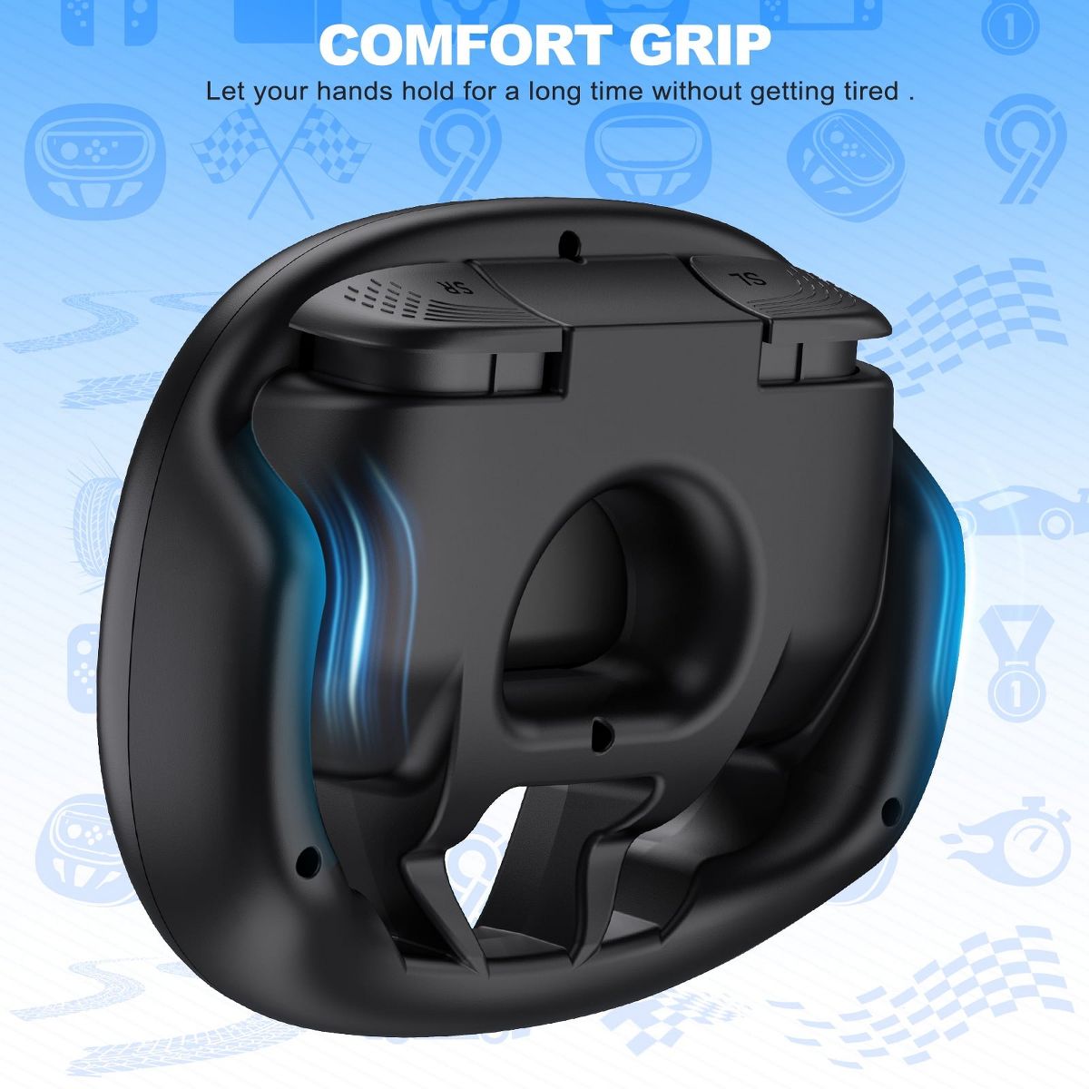 Elevate your Nintendo Switch 2 gaming experience with this dual-color F1 racing-style steering wheel, designed for ultimate immersion in games like Mario Kart 8 Deluxe. Engineered to fit Switch 2 Joy-Cons, this ergonomic steering wheel features LED sync status lights to quickly identify player numbers and connectivity, perfect for multiplayer races. Enjoy enhanced control with enlarged SL/SR keys and a realistic driving simulation, mimicking the feel of professional racing. The ergonomic design fits larger hands comfortably, while its easy click-in/click-out slots ensure hassle-free Joy-Con installation/removal. With gyroscope tilt control compatibility, tilt the wheel to steer intuitively, and the classic orange-blue color scheme matches your Switch 2’s aesthetics. Perfect for racing enthusiasts—upgrade your gameplay with this waterproof, durable Switch 2 accessory!
